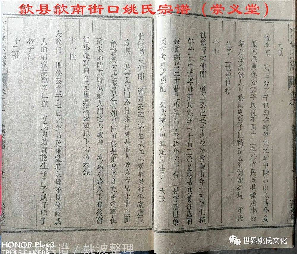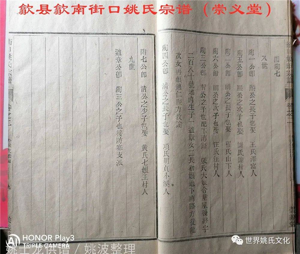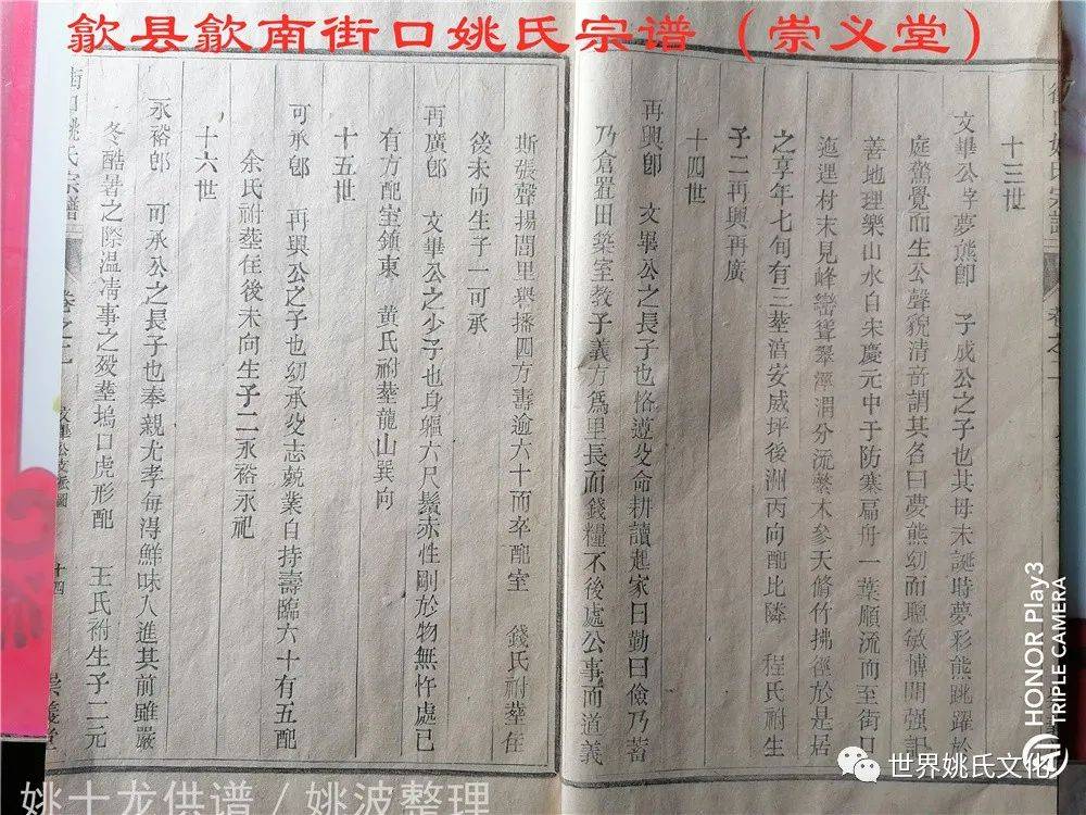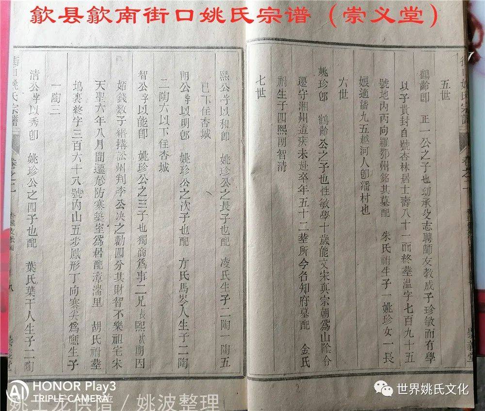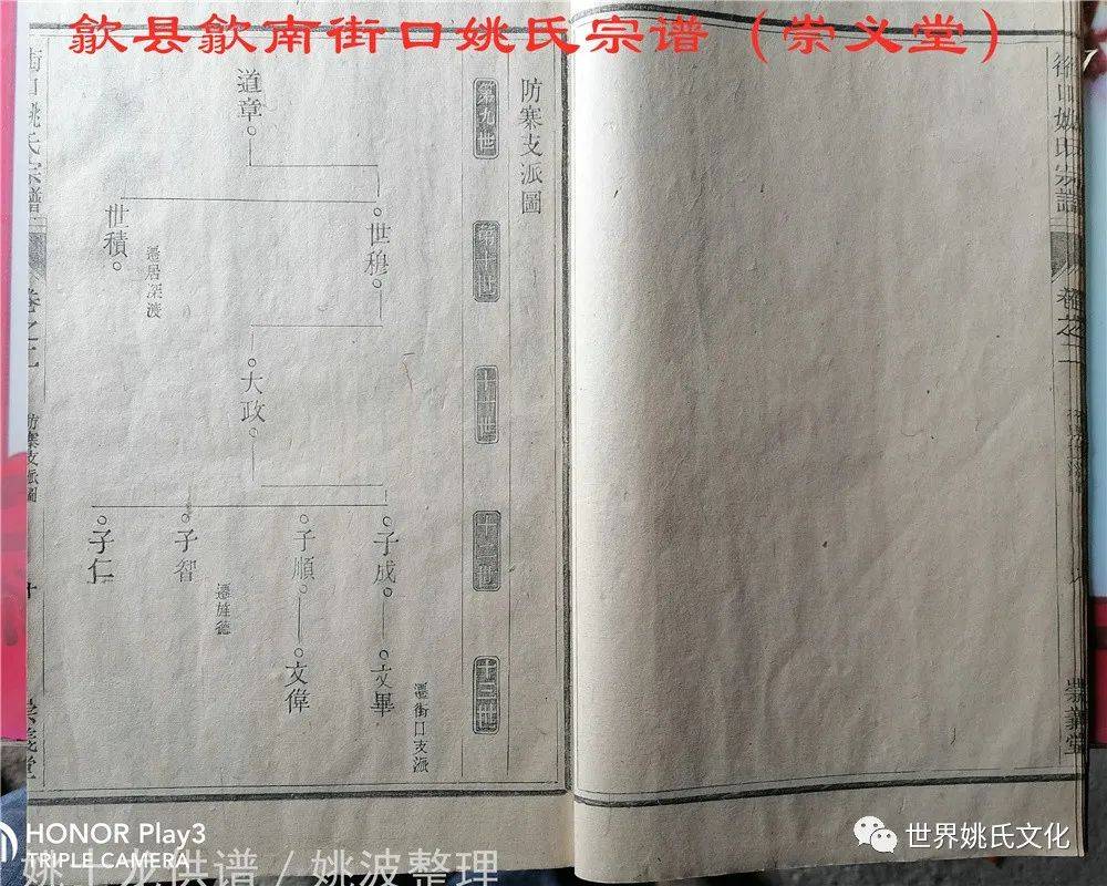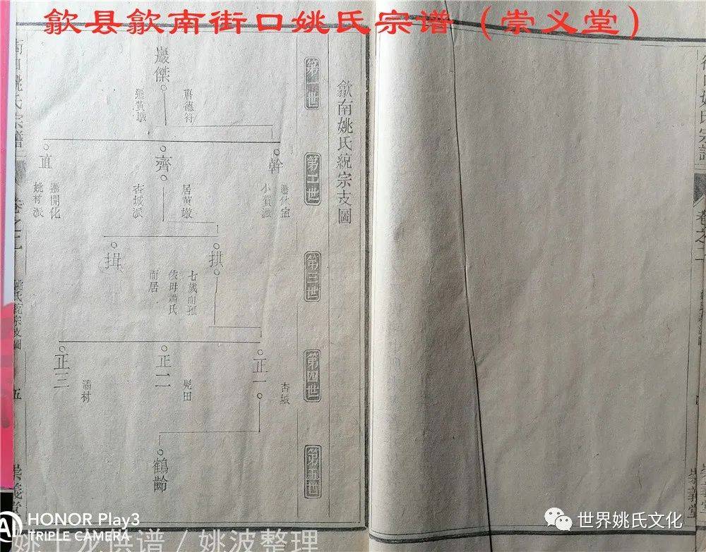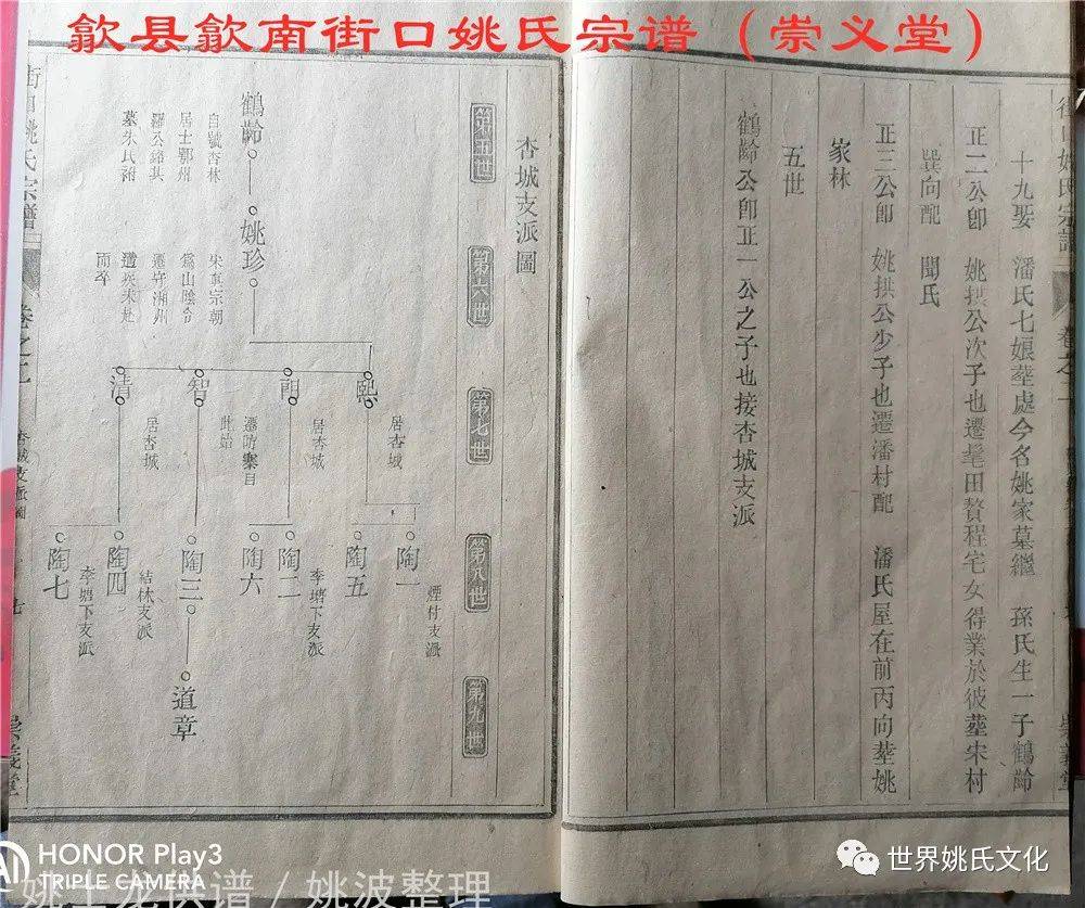 根据世系图表整理;一世:姚巖傑(唐德符迁黄墩)生三子,