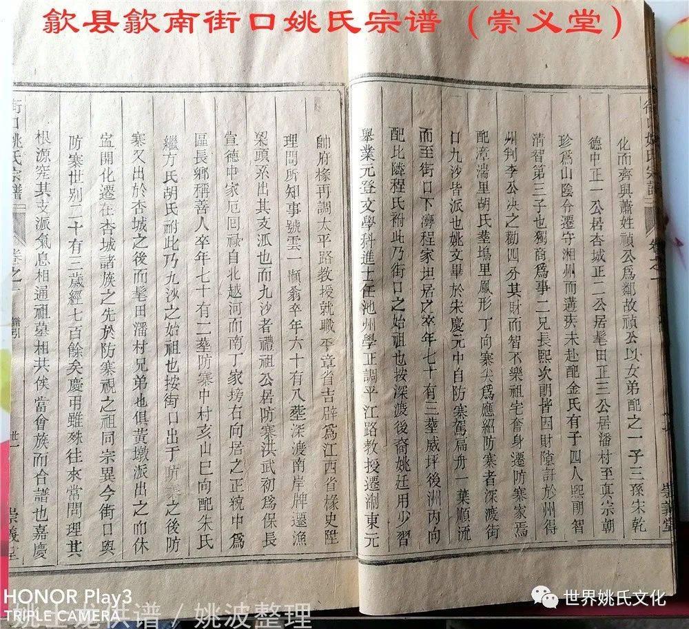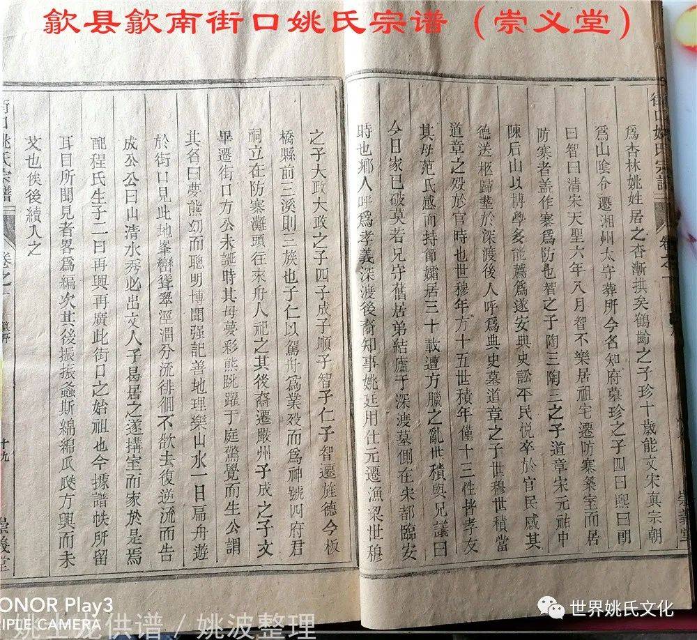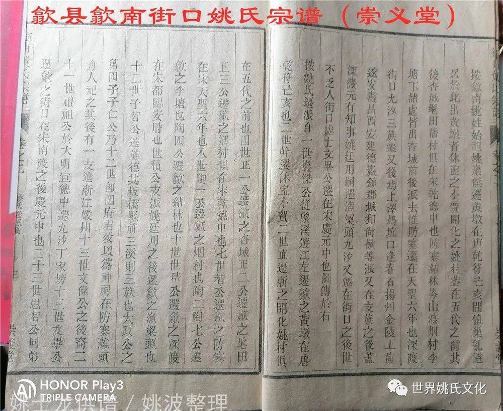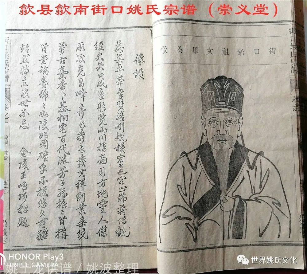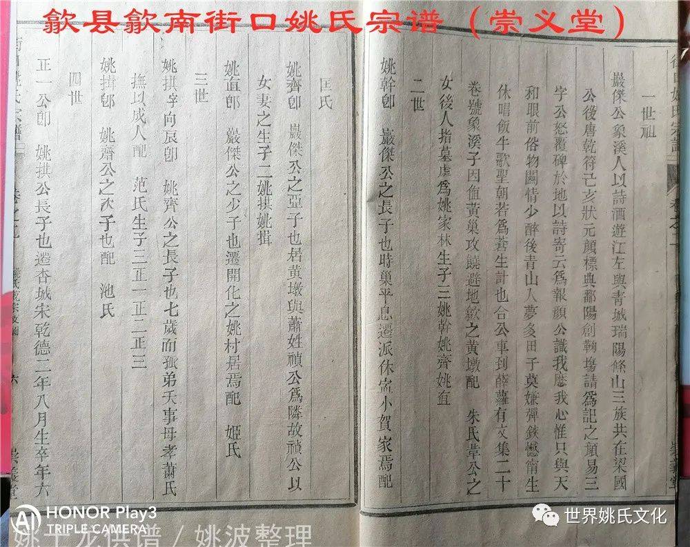 远祖:姚崇 先祖:姚巖傑(黄墩)三子 伯子姚干居休宁小贺,仲子姚齐居黄墩,季子姚直居开化姚村。