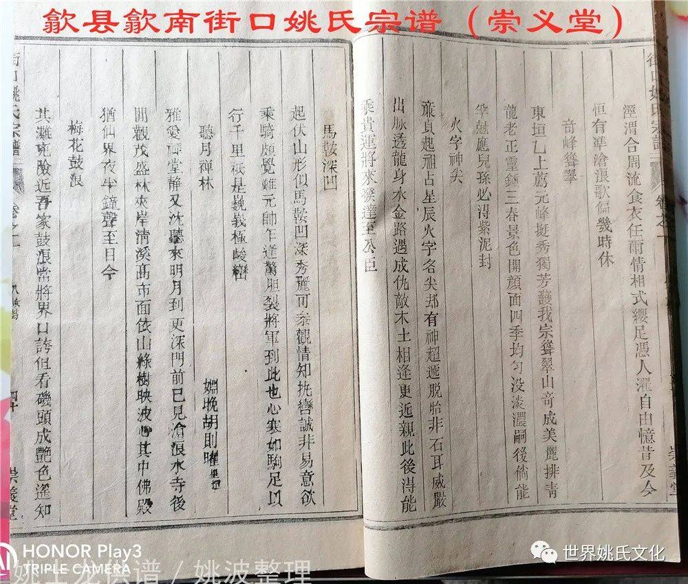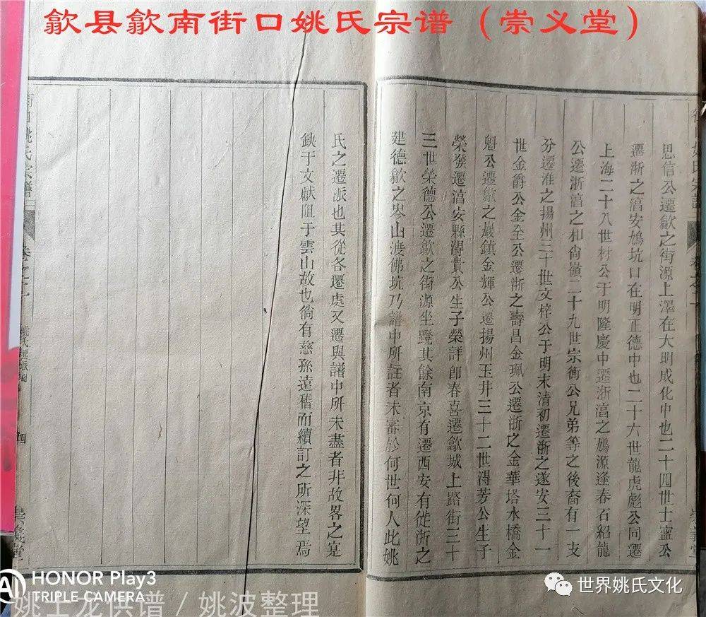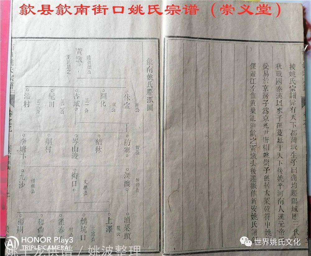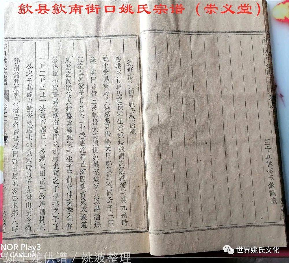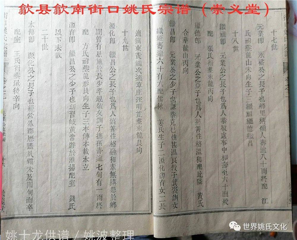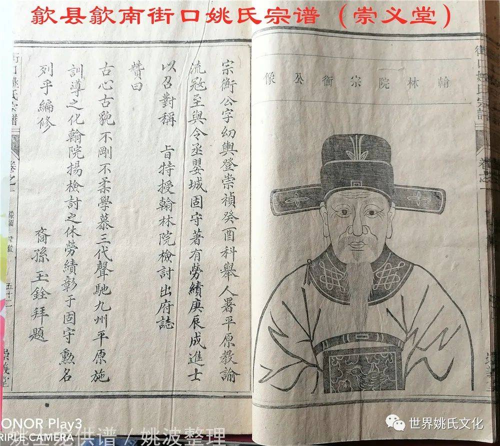 远祖:姚崇 先祖:姚巖傑(黄墩)三子 伯子姚干居休宁小贺,仲子姚齐居黄墩,季子姚直居开化姚村。
