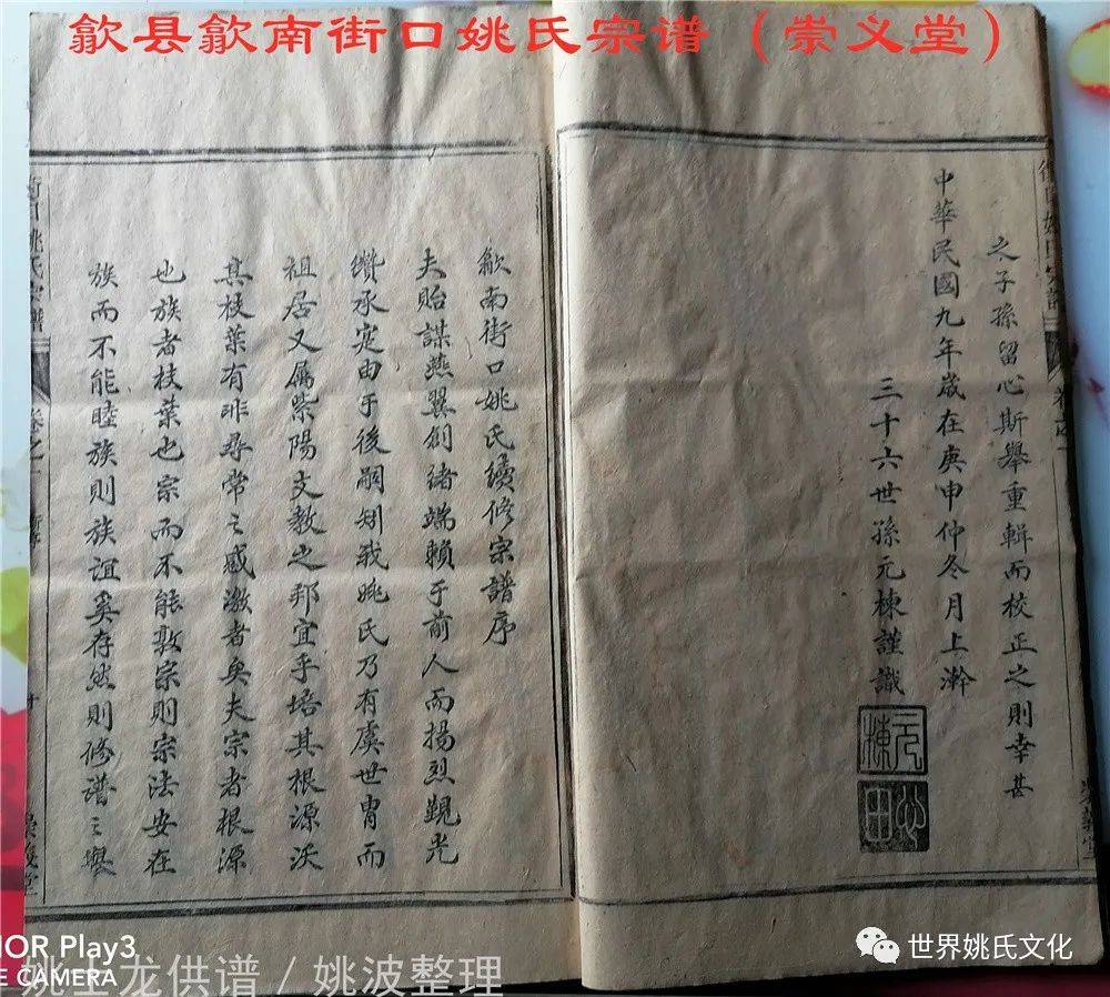 《安徽歙县歙南街口姚氏宗谱》卷一