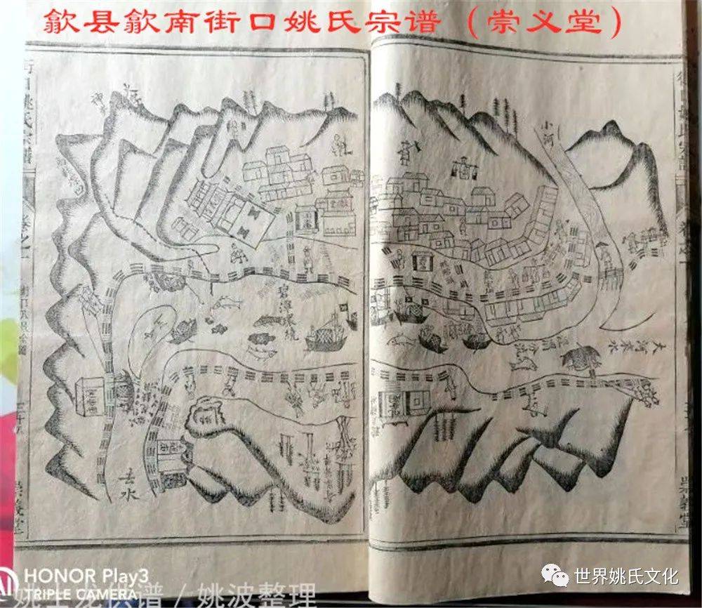 根据嘉庆18年歙西吴若兰序和迁图整理出正一公后智公宋真宗朝迁防寨、(其后有迁结林、岑山渡、炯村、李塘下);世積公由防寨再迁深渡,文毕公迁街口,礼祖公迁九沙。有居渔梁,旌德板桥前三溪等地。严州姚成之子姚文毕迁街口,是为始迁祖。防寨滩立有祠。