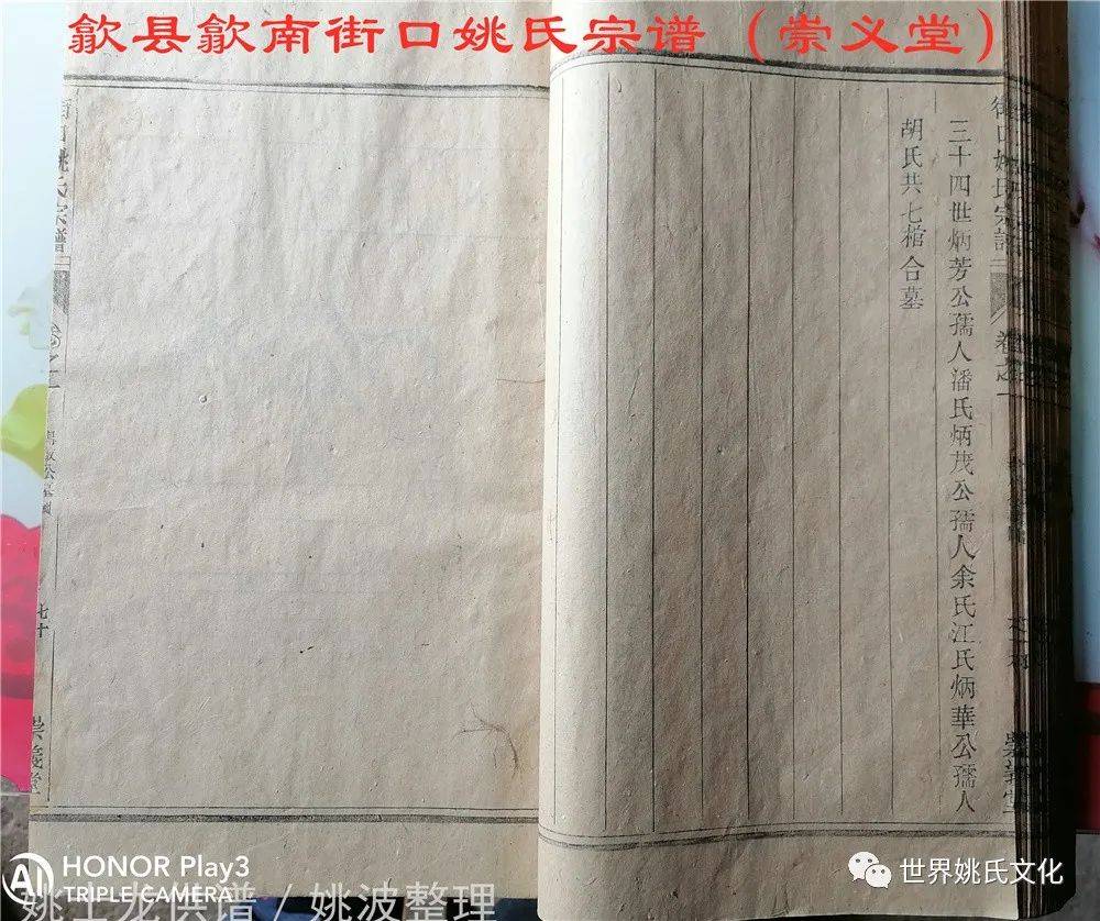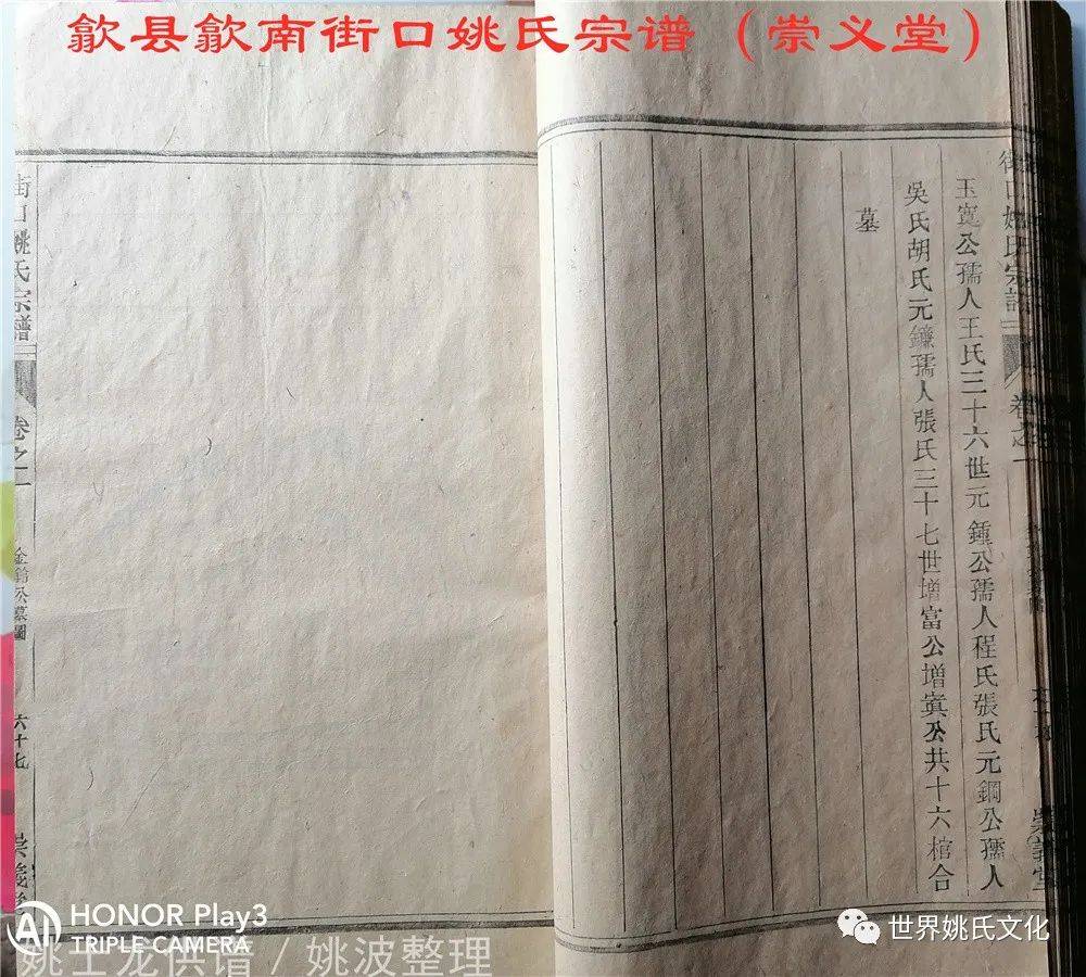 三世:姚齐有二子;长子姚拱、七岁而孤,依母肖氏而居。二子姚揖(无录)