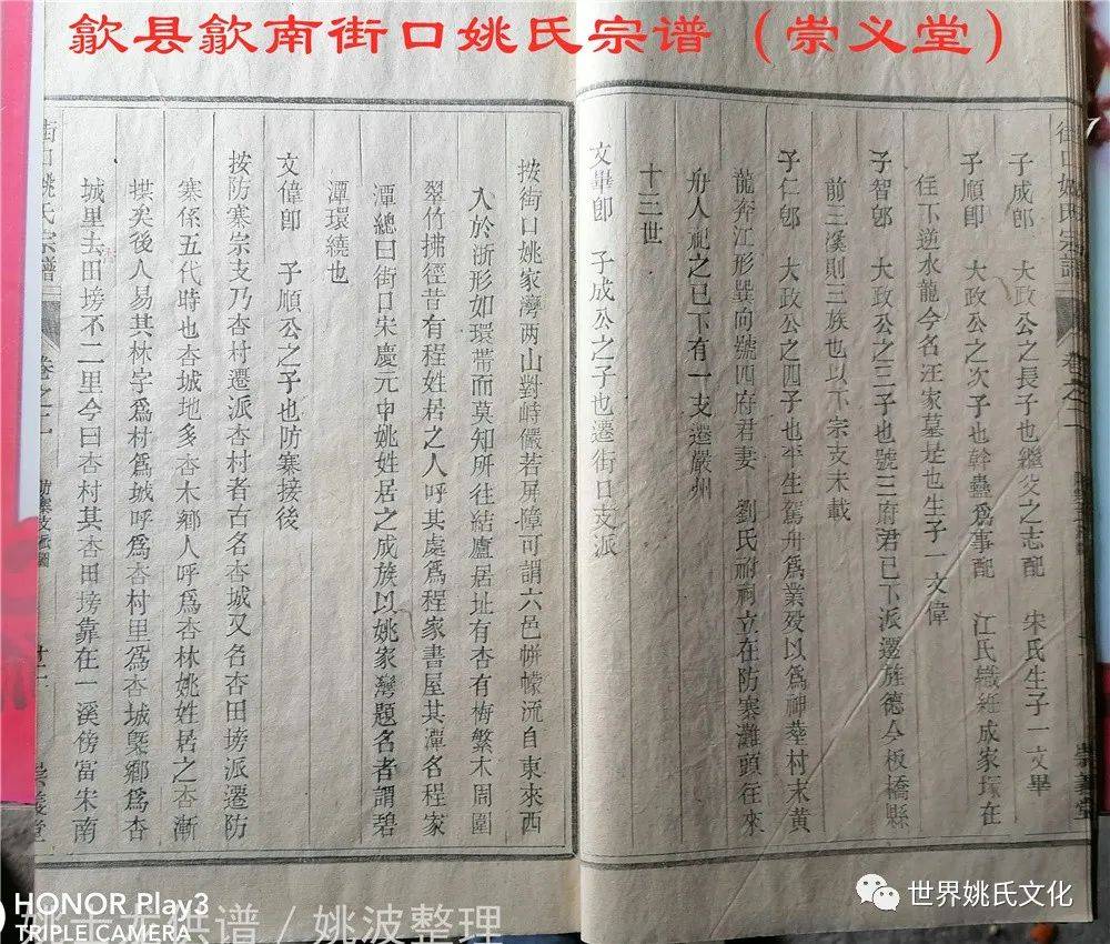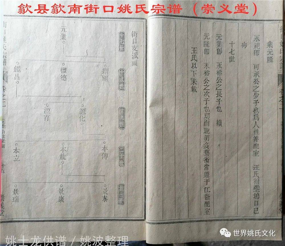 十三世:姚子成子姚文毕(始迁祖)迁街口支派。