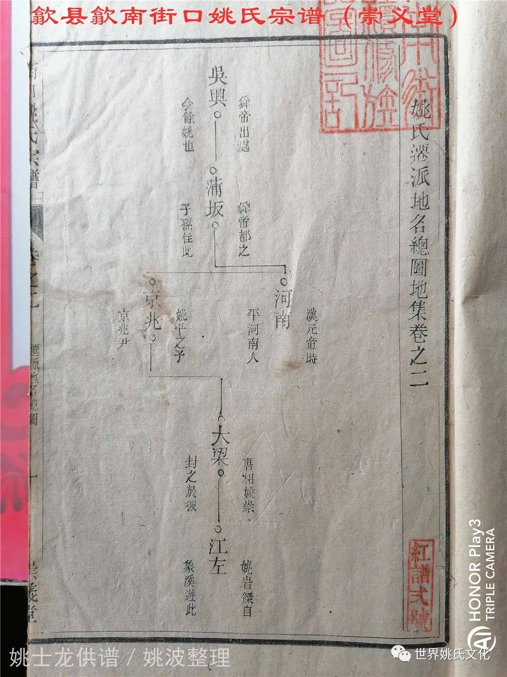 二世:伯子 姚干居休宁小贺派,仲子 姚齐居黄墩杏城派,季子 姚直居开化姚村。
