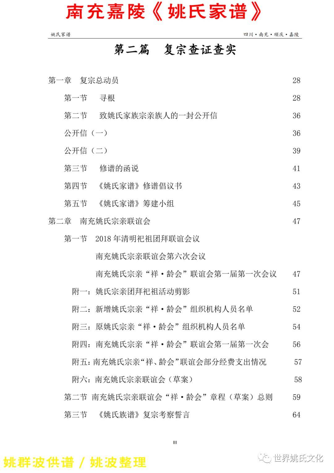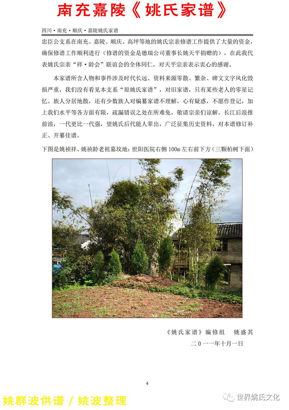 2011年1月18日起开始对嘉陵区的世阳镇、木老乡、一立乡、大通镇,顺庆区新建镇的姚氏家族家人登记,至2017年姚氏家族族人的统计率已达百分之九十九以上。