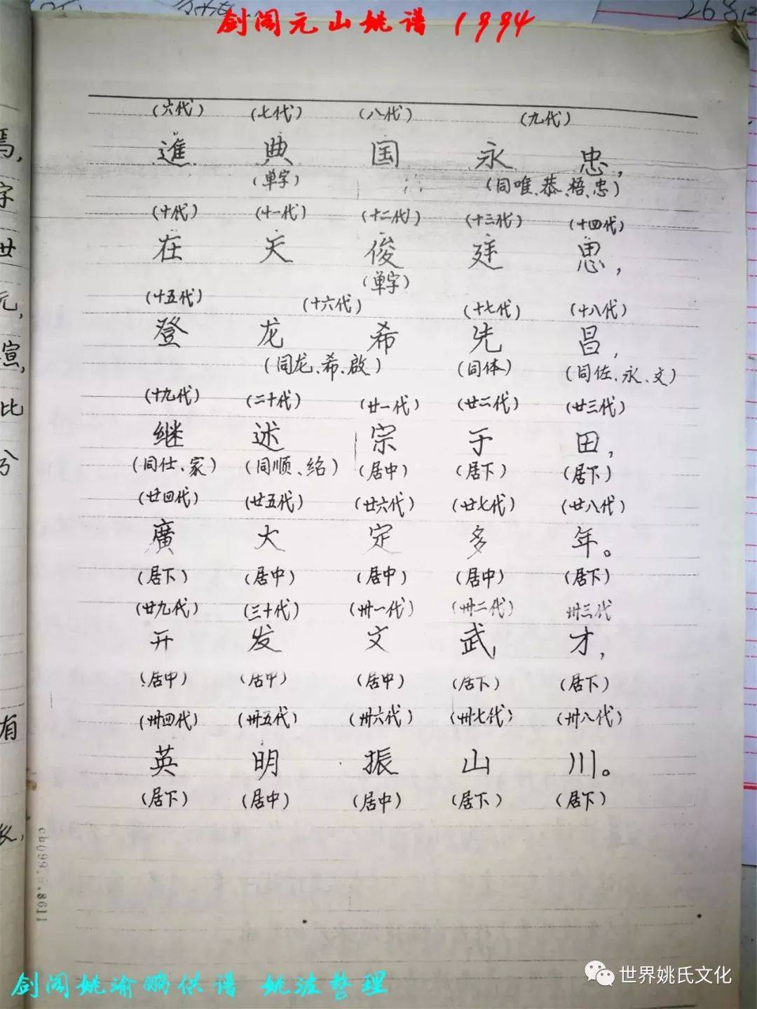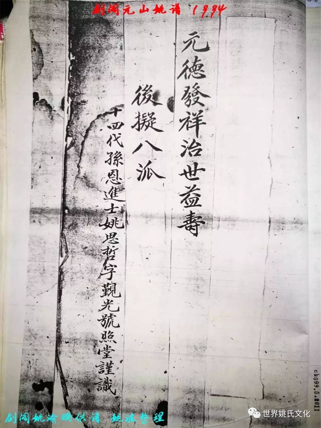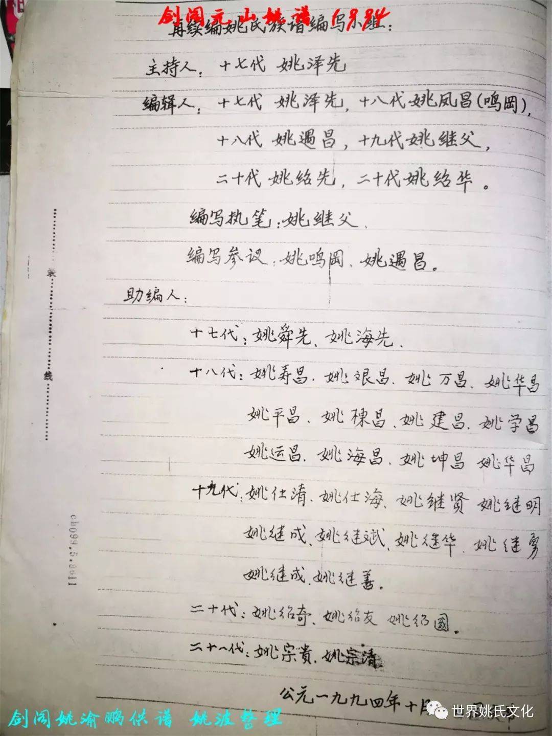 编辑:17代 姚泽先 18代 姚凤昌(鸣冈)姚遇昌 19代 姚继父 20代 姚绍先 姚绍华