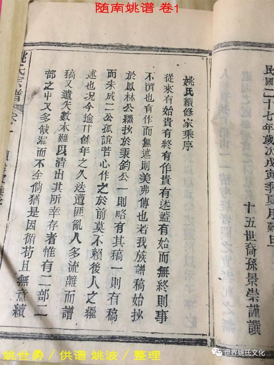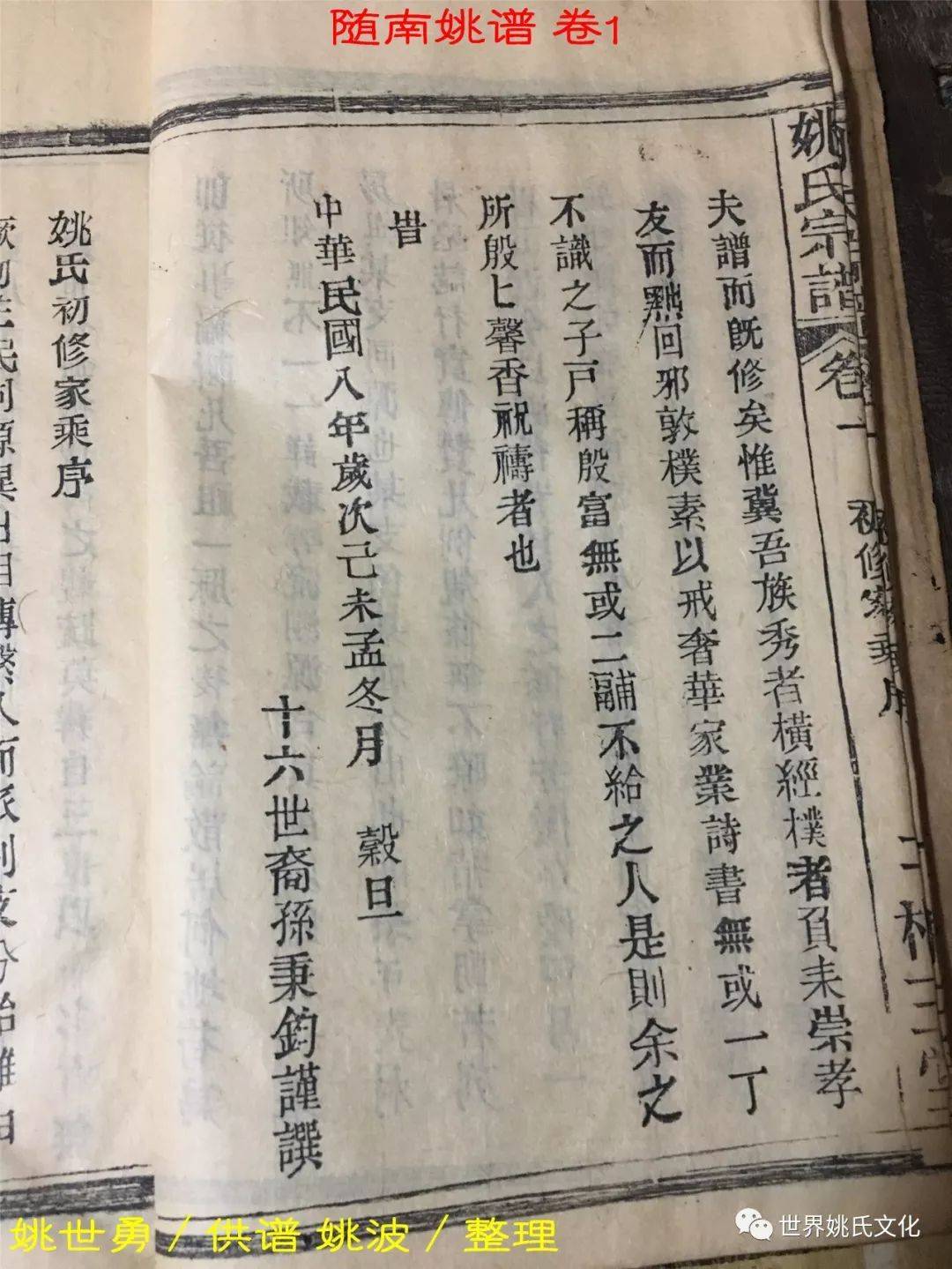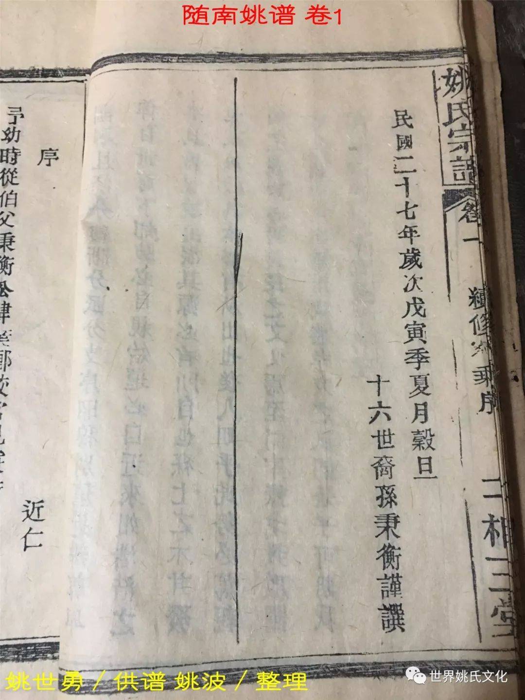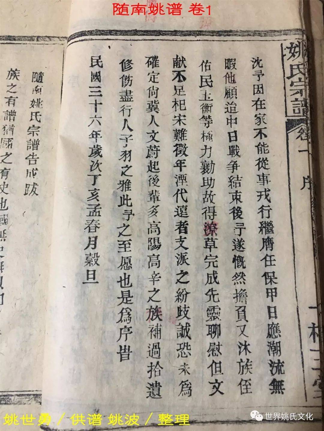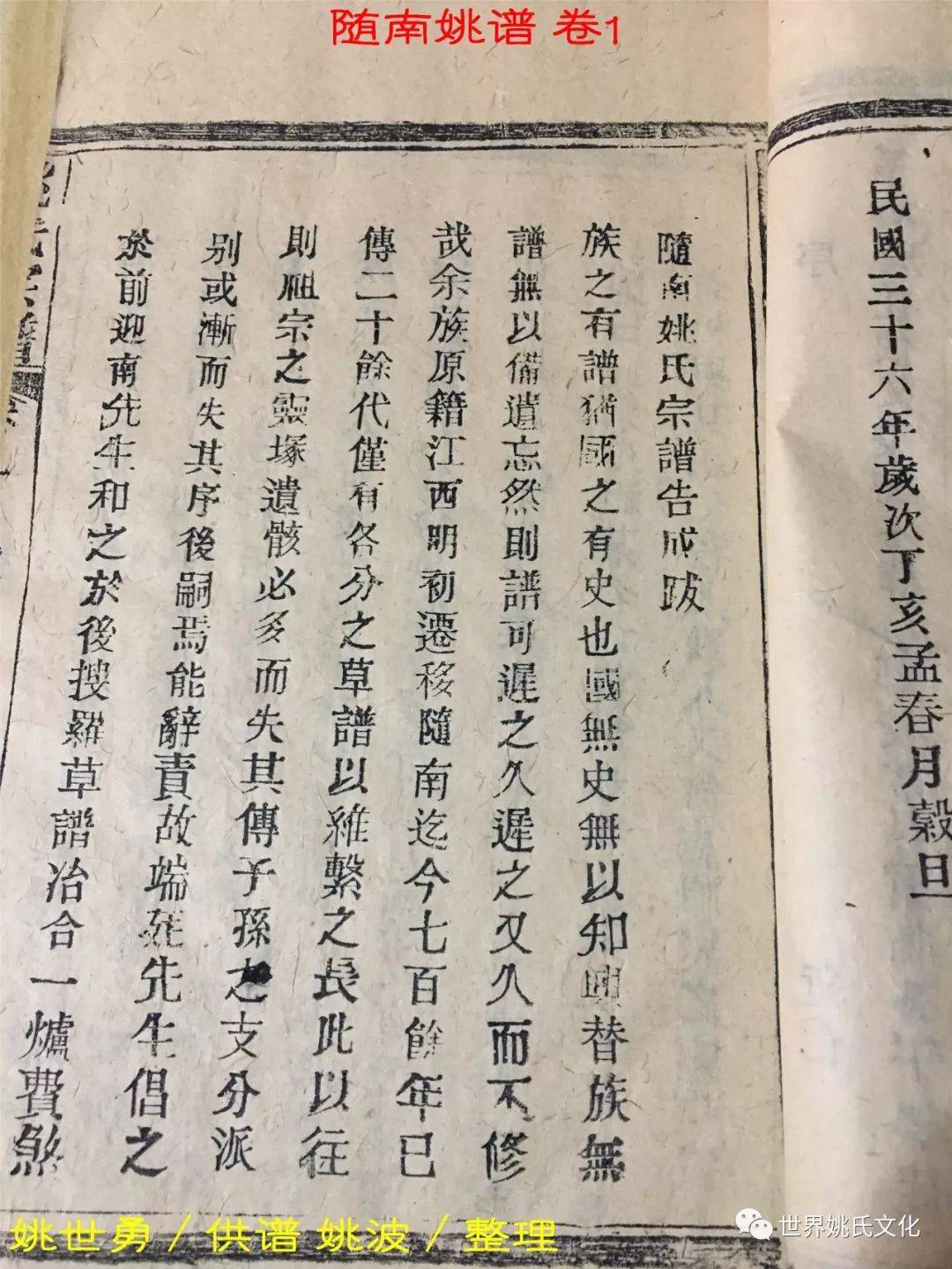随南伏一公裔姚氏族谱六卷 民国36年版