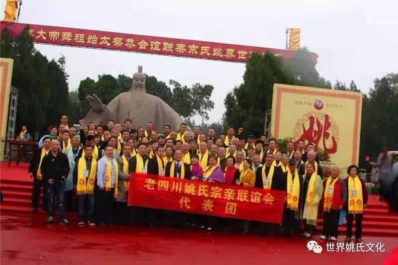 2015年10月25日,来自海內外姚氏代表近3000人,在山西省运城市鸣条岗舜帝陵参加“世姚会”举行的“世界姚氏宗亲联谊会恭祭太始祖舜帝大典”。中午,全体代表就在舜帝陵广场上吃坝坝宴,场面十分状观感人!我县有姚光彩、姚光先、姚银莲、姚辉霞、姚万金五人参加。活动结束后,我们蒲江五人还专程到舜帝故里——永济市张营乡舜帝村去考察寻根。