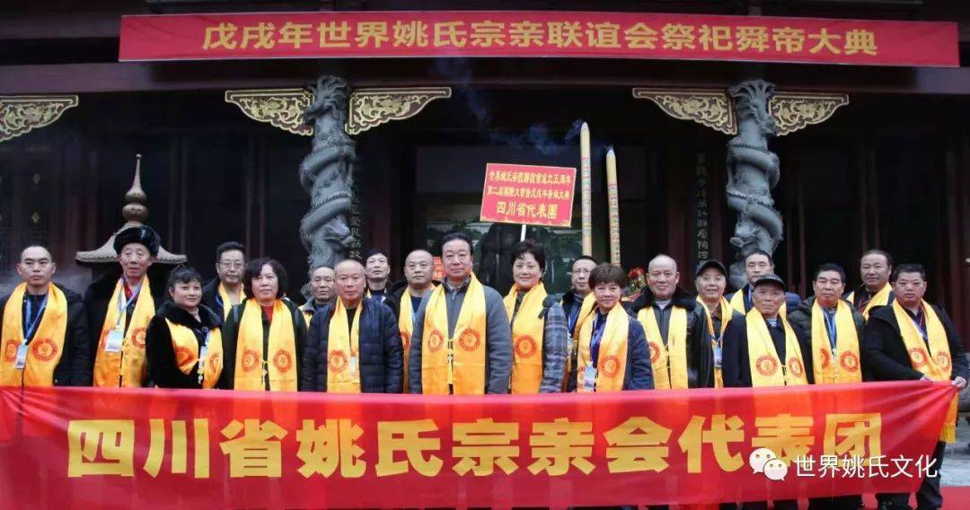 2013年11月6日,参加“世姚会”成立大会的代表和未参会的全国各地姚氏代表共2200多人,在湖南省永州市九嶷山舜帝陵举行“世姚会”首届公祭舜帝大典。我蒲江县有姚光彩、姚辉智(狮子树村)、姚万金三人参加了大会和公祭舜帝大典。参加广东的成立大会和湖南的祭祖活动的代表除来回的交通费自付外,每人只交100元的会务费,其余一切开支均由大会收到的捐款解决。大会共收到捐款300多万元(其中多数为姚氏华桥所捐,华桥中每人捐68万元的就有四人),两项活动共开支200多万元。