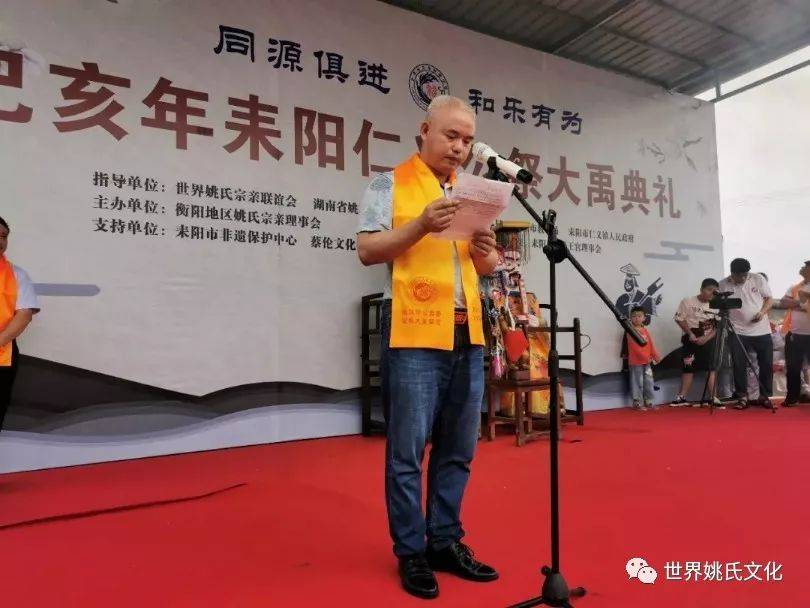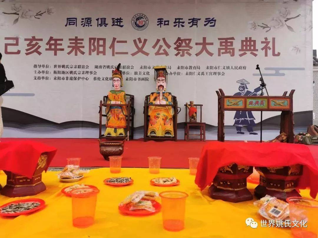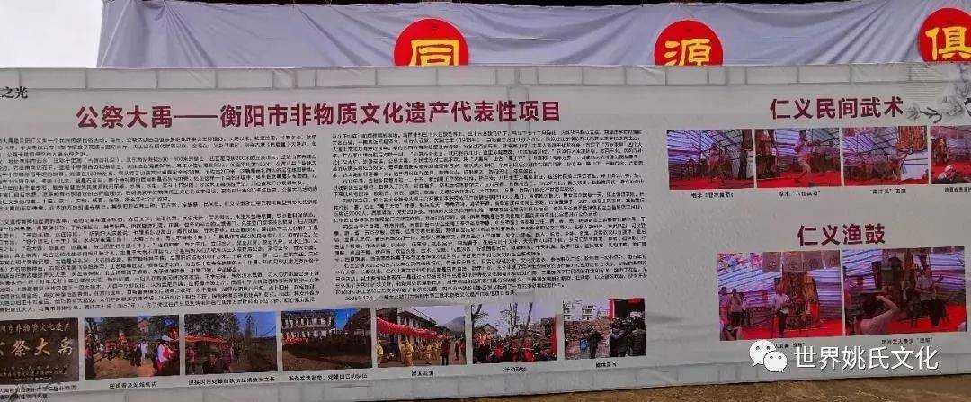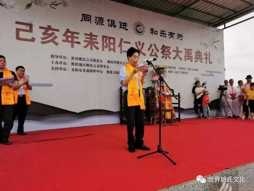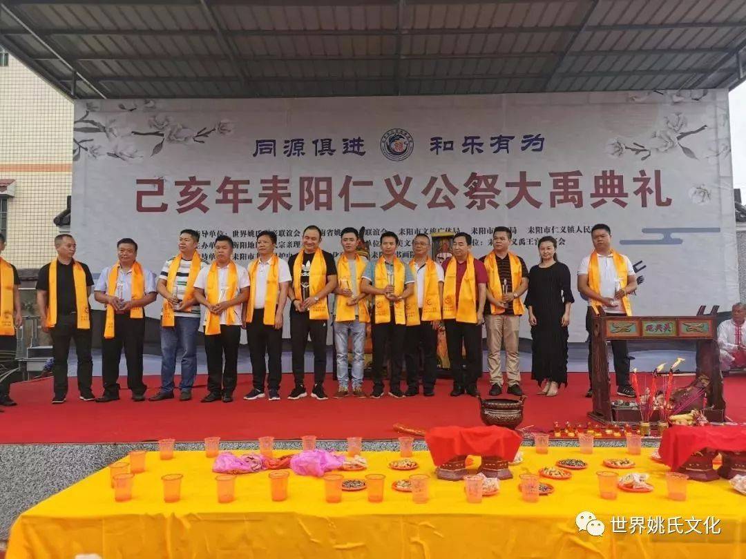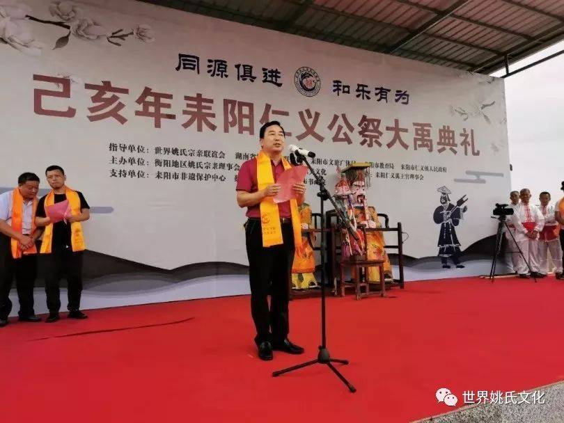 7月14日,农历六月十二,由衡阳地区姚氏宗亲理事会主办的己亥年耒阳仁义公祭大禹典礼、首届“仁义之光”非物质文化遗产展演活动在耒阳仁义镇衡头村盛大举行。此次活动得到了世界姚氏宗亲联谊会、湖南姚氏宗亲联谊会、耒阳市文旅广体局、耒阳市教育局、耒阳市仁义镇人民政府的悉心指导,得到了耒阳市非遗保护中心、耒阳市禹王宫理事会、蔡伦文化研究院、耒阳市书画院的大力支持,得到了衡阳日报、衡阳电视台、耒阳电视台、耒阳快讯等主流媒体的强势关注与支持。