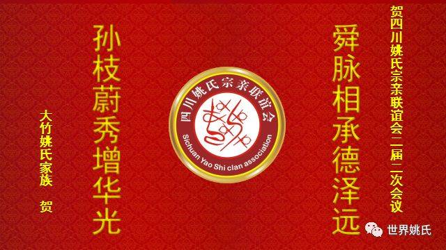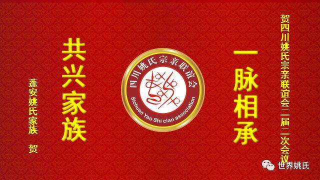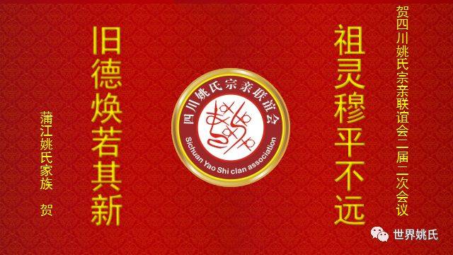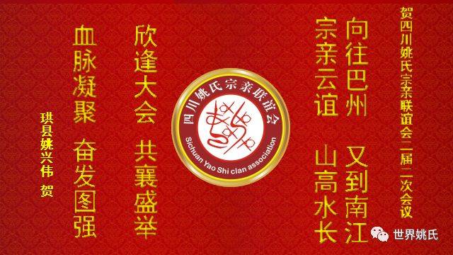 预祝四川姚氏宗亲联谊会兴旺发达,越办越红火,为姚氏家族事业作出更大的贡献!