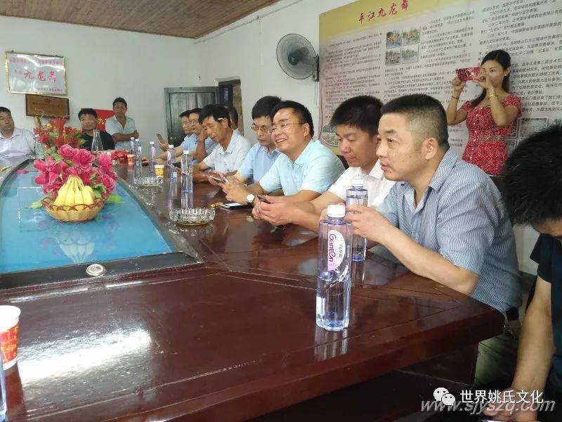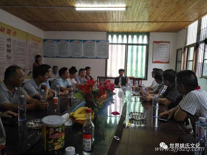 随后,全体宗亲在会议室召开座谈会,长湘姚氏宗亲会姚炎喜宗亲和姚罗华宗亲代表长湘姚氏宗亲会对平江县姚氏宗亲的热情接待表示衷心的感谢!伍市镇白杨村书记姚秋贵致词对长湘姚氏宗亲会的各位到来表示热烈的欢迎!