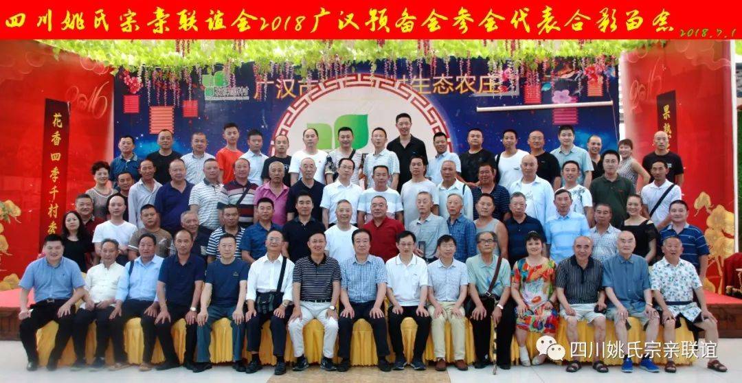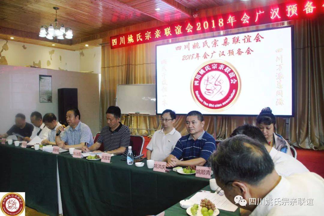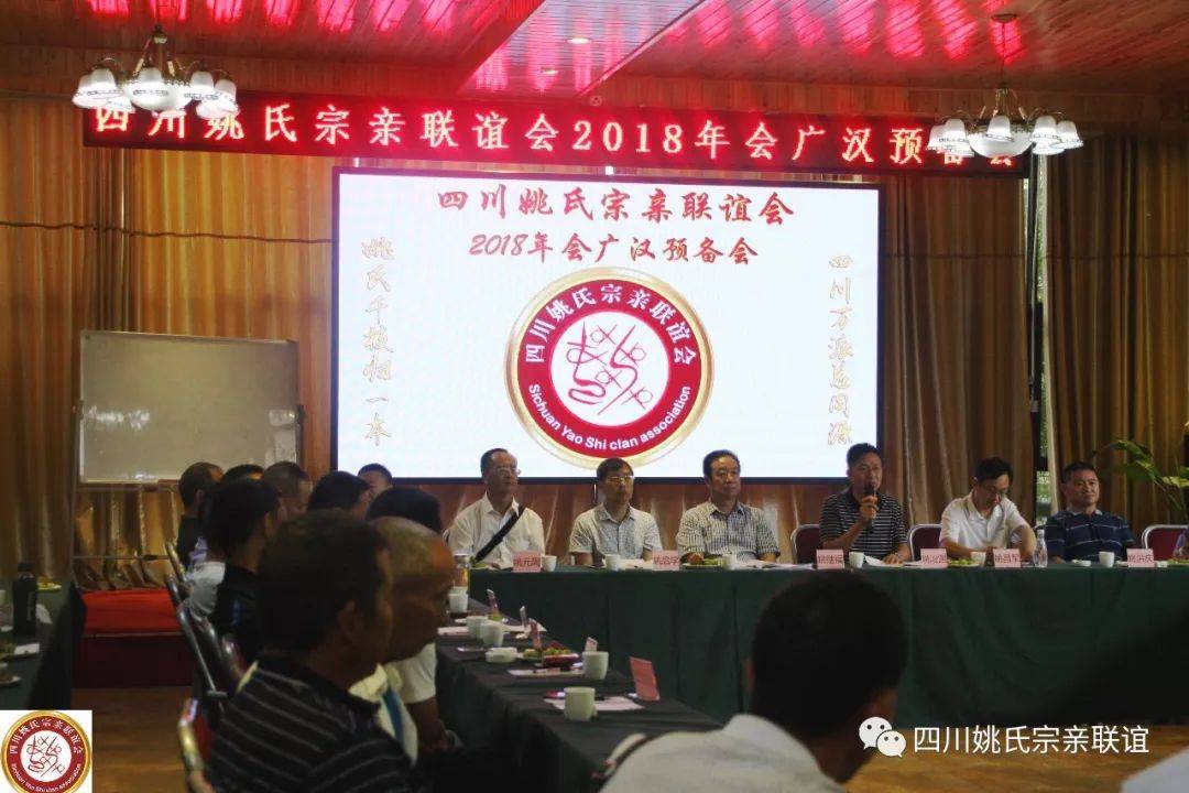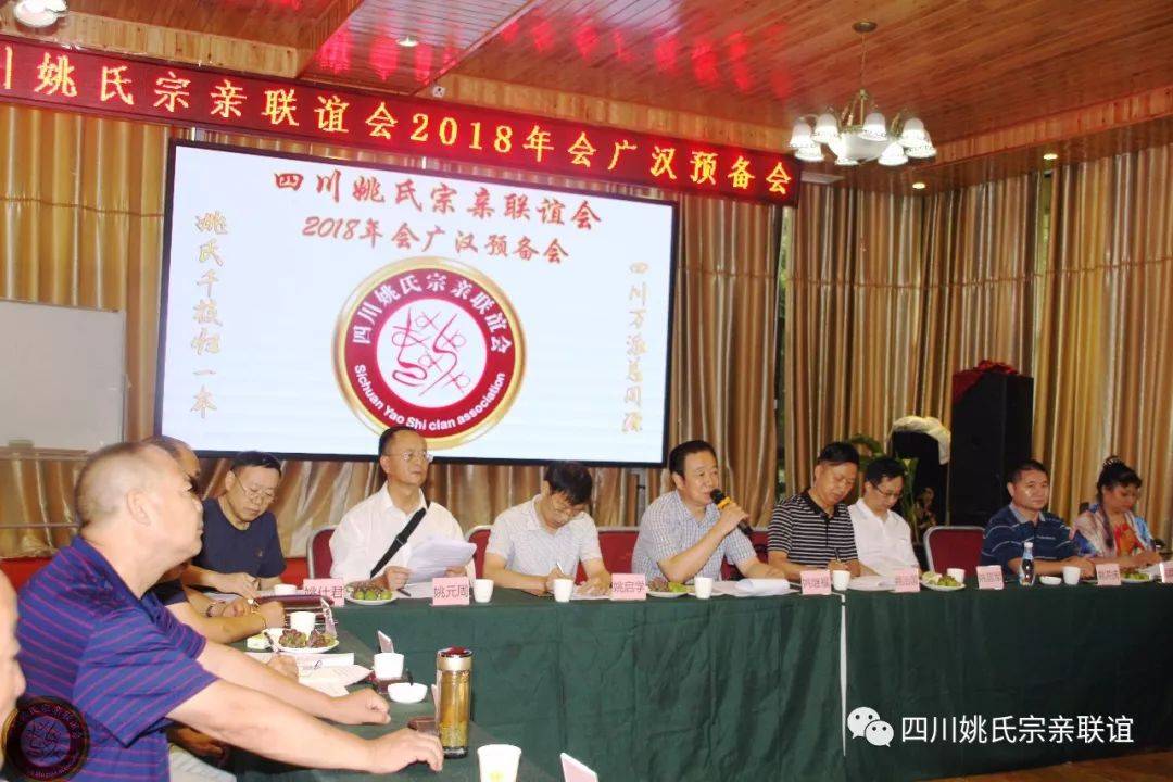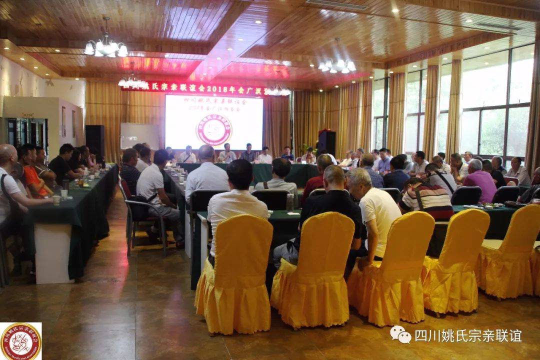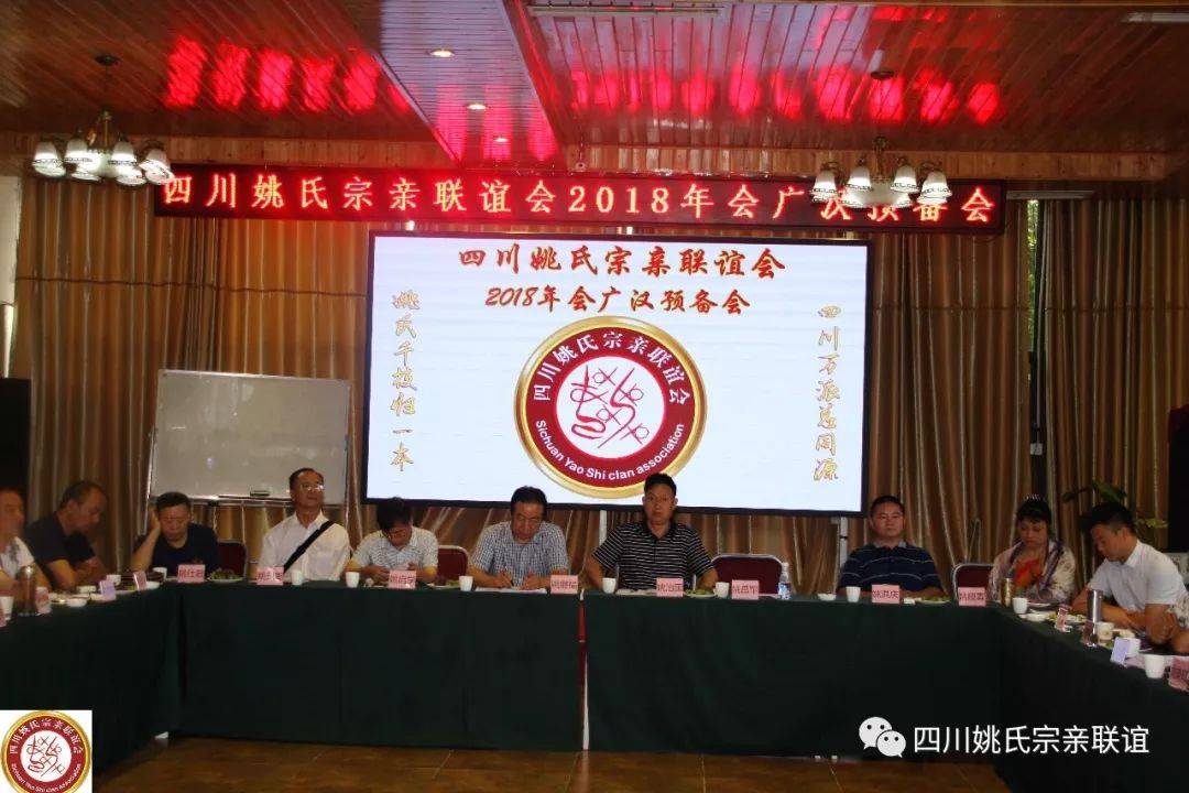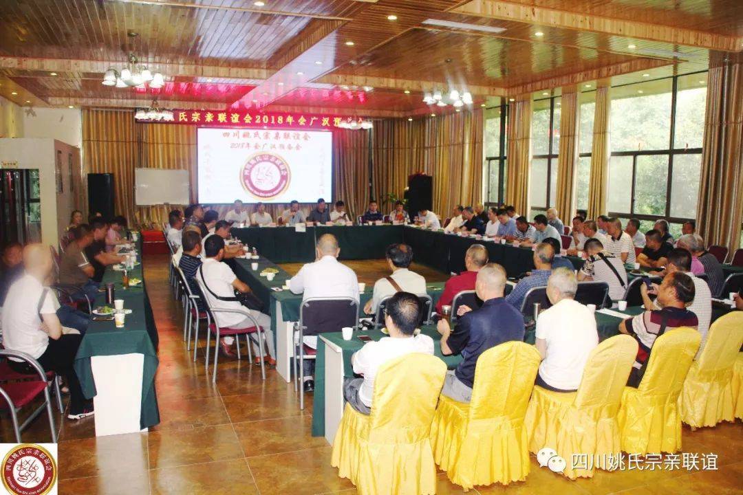 姚氏千支归一本,四川万派总同源。2018年7月1日,72位来自全省各地姚氏族亲齐聚广汉花果新村生态农庄,就四川姚氏宗亲联谊会2018年巴中南江年会上各项议程进行商讨。预备会就年会议程内容作出具体分工。就章程中会员费上调,取消团体会费的原因作出了说明。提议川姚会年报改名为《年鉴》的想法给予肯定。与会宗亲对平衡川姚会财务收支作出积极探索,清理川姚会历年来的文史和资产并适时出台资产管理办法。对奖励姚氏优秀学子达成意向性意见,对姚氏宗族有突出贡献的慰问逐步形成规范性制度等议程。
