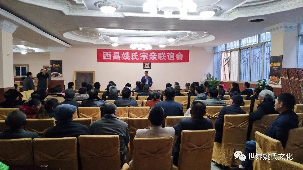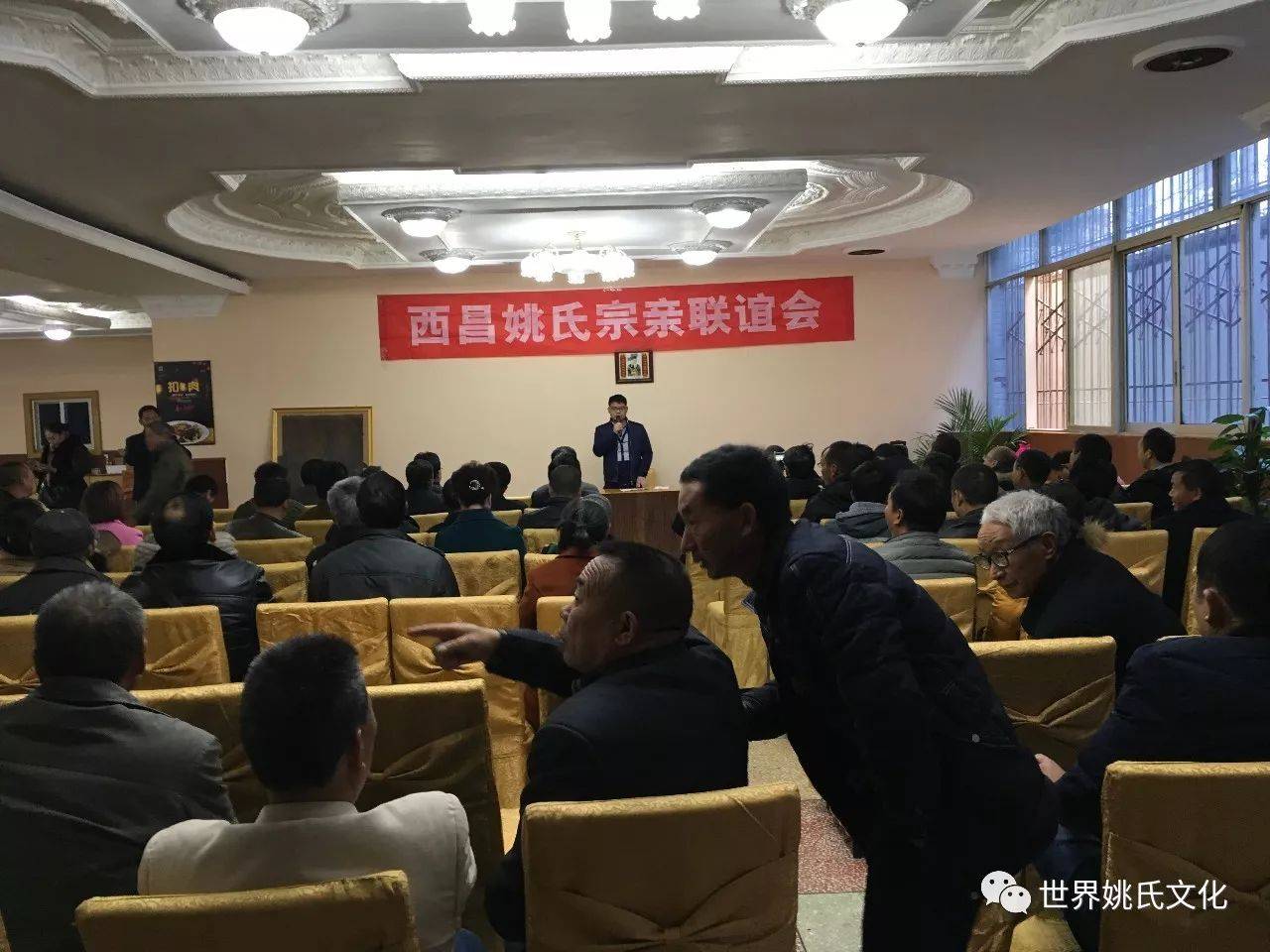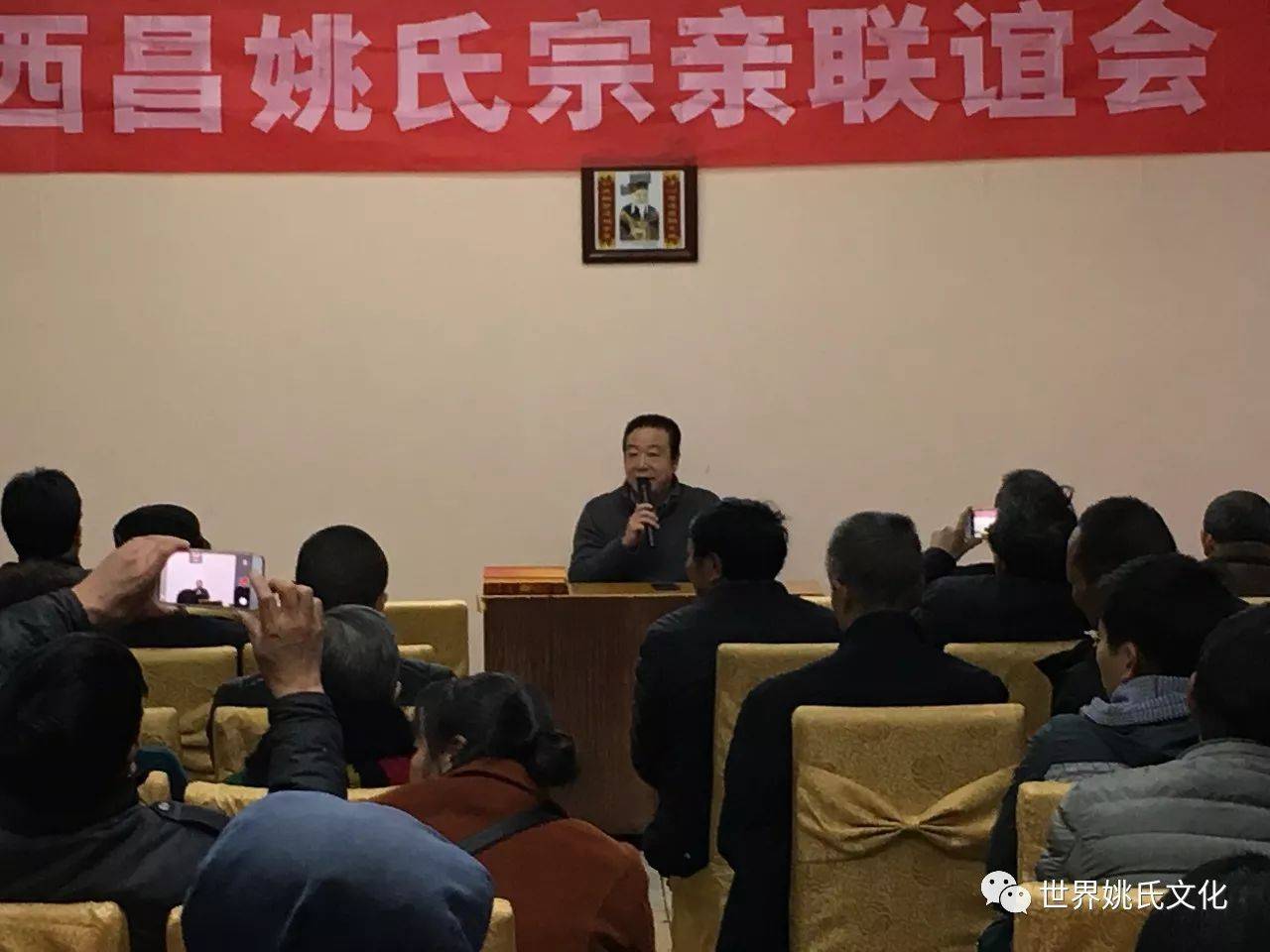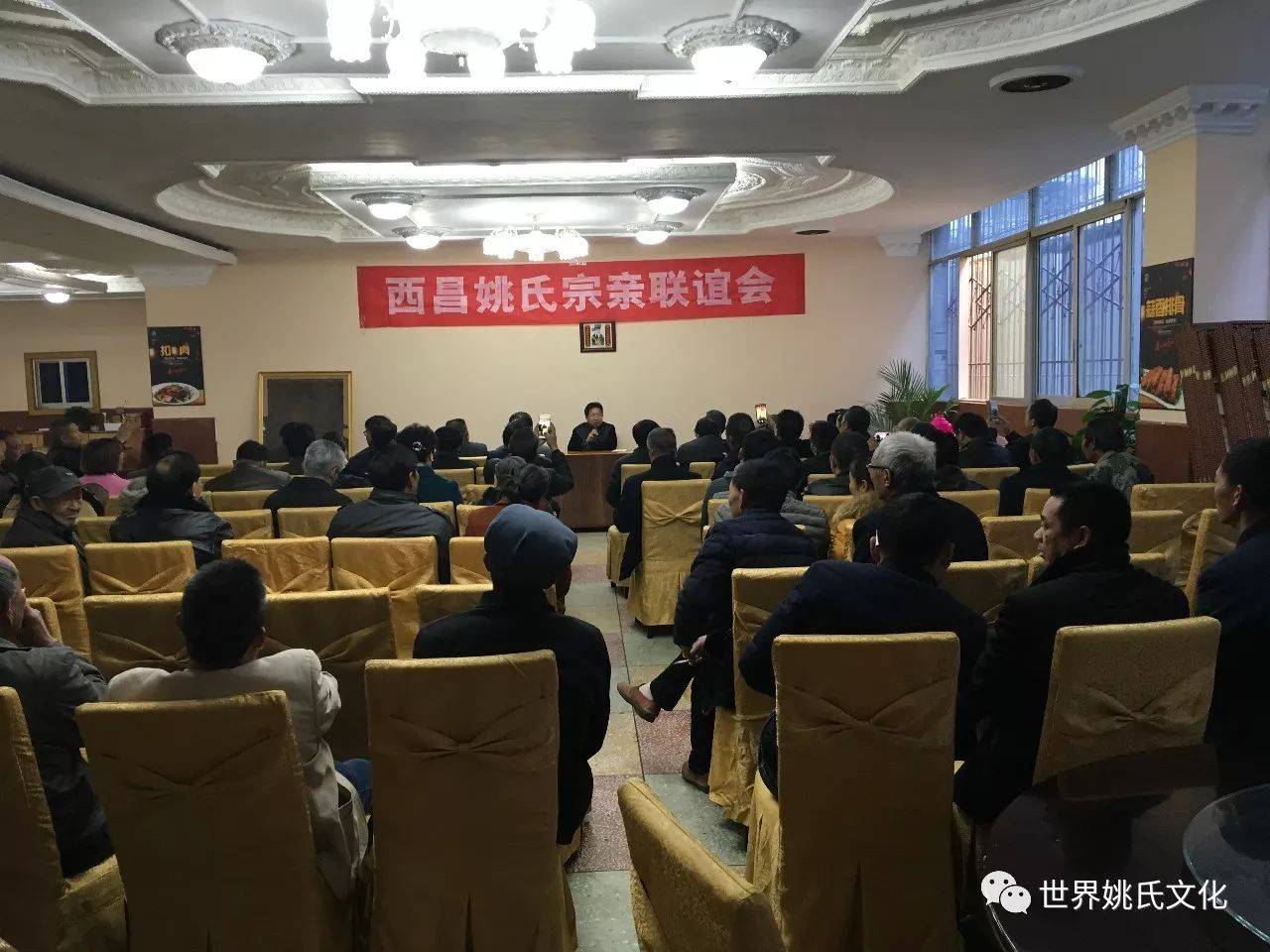 2017年12月16日,西昌姚氏宗亲联谊会2017年会在西昌邮电宾馆姚家老九碗(名店街邮政银行旁)团年会,来自西昌各地110余位代表参加了会议。四川姚氏宗亲联谊会姚继富会长专程参加会议并发表讲话,对四川最多姚姓的西昌寄与厚望,为各地姚氏的沟通、交流、联系建立了一个良好的平台。对联谊会的分工、家族文化研究、活动的后勤服务提出指导性意见,勉励西昌姚氏抓住承办2019《四川姚氏宗亲联谊会》年会机会,多与各地代表交流。西昌在四川是边远地区,请进来,走出去实属不易,借年会之际,让大家多了解攀西姚氏历史,这对于攀西姚氏有更极积的一面。凉山州姚氏宗亲联谊会姚正权会长,西昌姚氏宗亲联谊会姚家祥会长,凉山州姚氏宗亲联谊会秘书长姚明立分别发表讲话。希望西昌姚氏宗亲联谊会将形成新的动力,进一步增进相互间的友谊,不断加强亲情联络、发展经济的合作,为四川姚氏的文化传承、研究和宗族的联谊、团结、发展、繁荣作出更大的贡献。