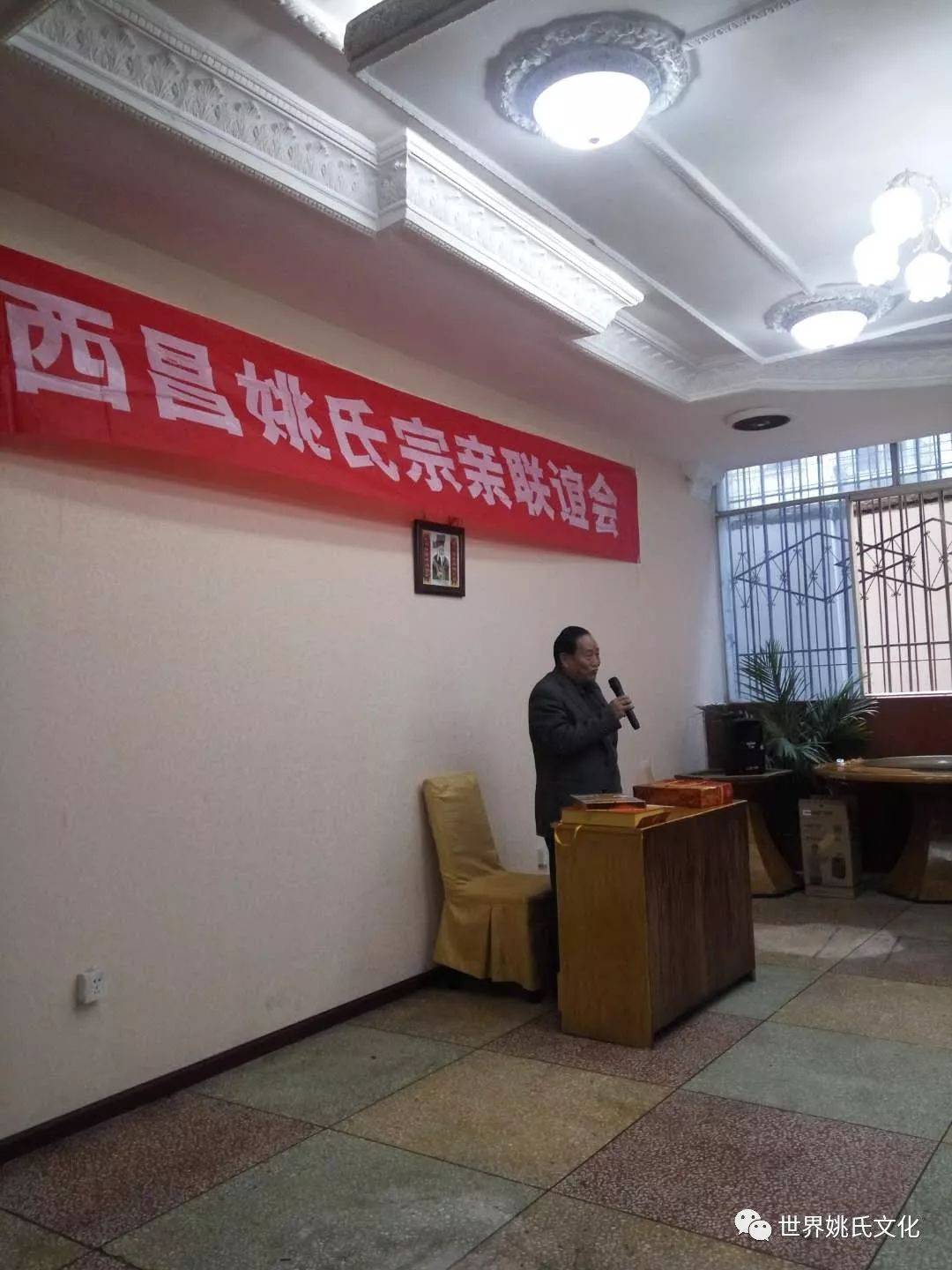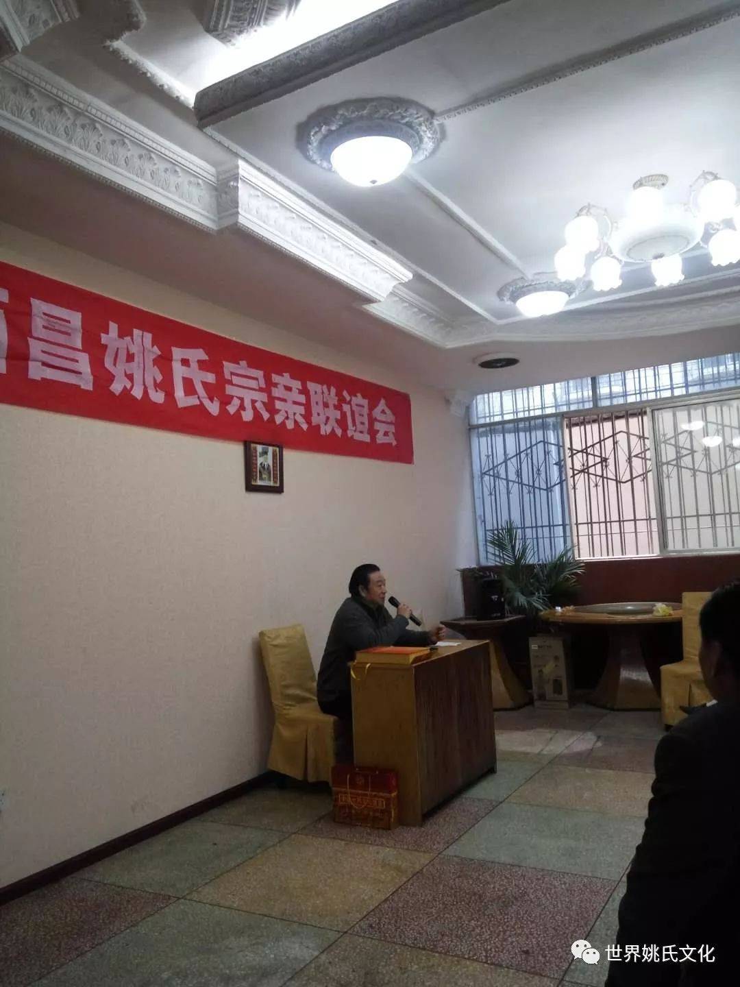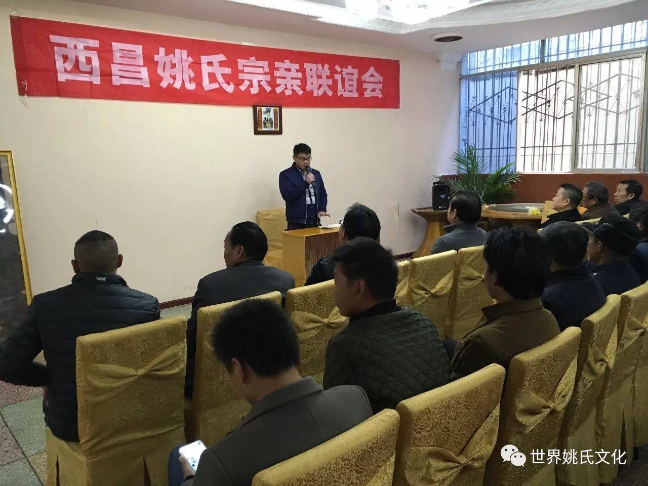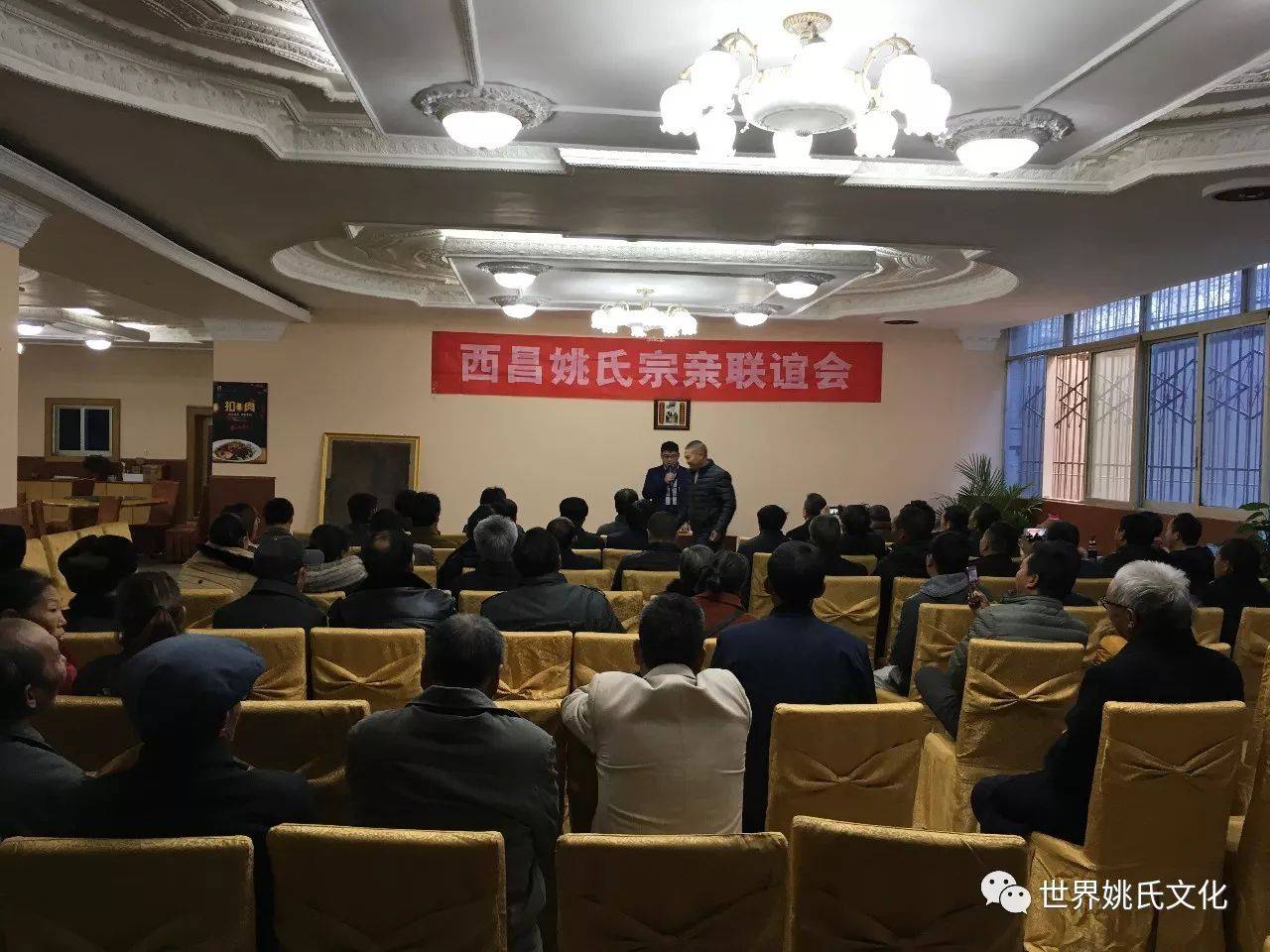 2017年12月16日,西昌姚氏宗亲联谊会2017年会在西昌邮电宾馆姚家老九碗(名店街邮政银行旁)团年会,来自西昌各地110余位代表参加了会议。四川姚氏宗亲联谊会姚继富会长专程参加会议并发表讲话,对四川最多姚姓的西昌寄与厚望,为各地姚氏的沟通、交流、联系建立了一个良好的平台。对联谊会的分工、家族文化研究、活动的后勤服务提出指导性意见,勉励西昌姚氏抓住承办2019《四川姚氏宗亲联谊会》年会机会,多与各地代表交流。西昌在四川是边远地区,请进来,走出去实属不易,借年会之际,让大家多了解攀西姚氏历史,这对于攀西姚氏有更极积的一面。凉山州姚氏宗亲联谊会姚正权会长,西昌姚氏宗亲联谊会姚家祥会长,凉山州姚氏宗亲联谊会秘书长姚明立分别发表讲话。希望西昌姚氏宗亲联谊会将形成新的动力,进一步增进相互间的友谊,不断加强亲情联络、发展经济的合作,为四川姚氏的文化传承、研究和宗族的联谊、团结、发展、繁荣作出更大的贡献。