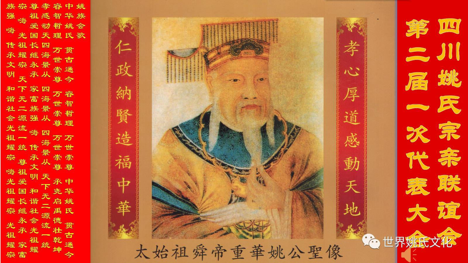 传承姚族美德,弘扬舜孝精神。喜悉四川姚氏宗亲联谊会第二届一次代表大会即将在泸州召开之际,世界姚氏宗亲联谊会向四川姚氏宗族致以热烈的祝贺,向为发展姚氏家族文化事业发展作出无私奉献、付出辛勤汗水的宗贤们表示崇高的敬意并致以诚挚的谢意!