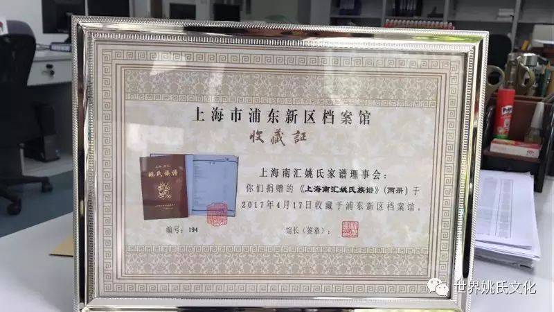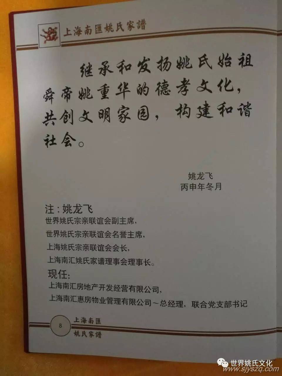 今欣闻上海南汇姚氏家族,在以龙飞宗亲为会长的修建南汇姚氏家谱理事会组织和领导下,修谱人员克服重重困难,历尽千辛万苦,成功修纂了南汇姚氏家谱,这是中华姚氏家族的又一件大喜事。
