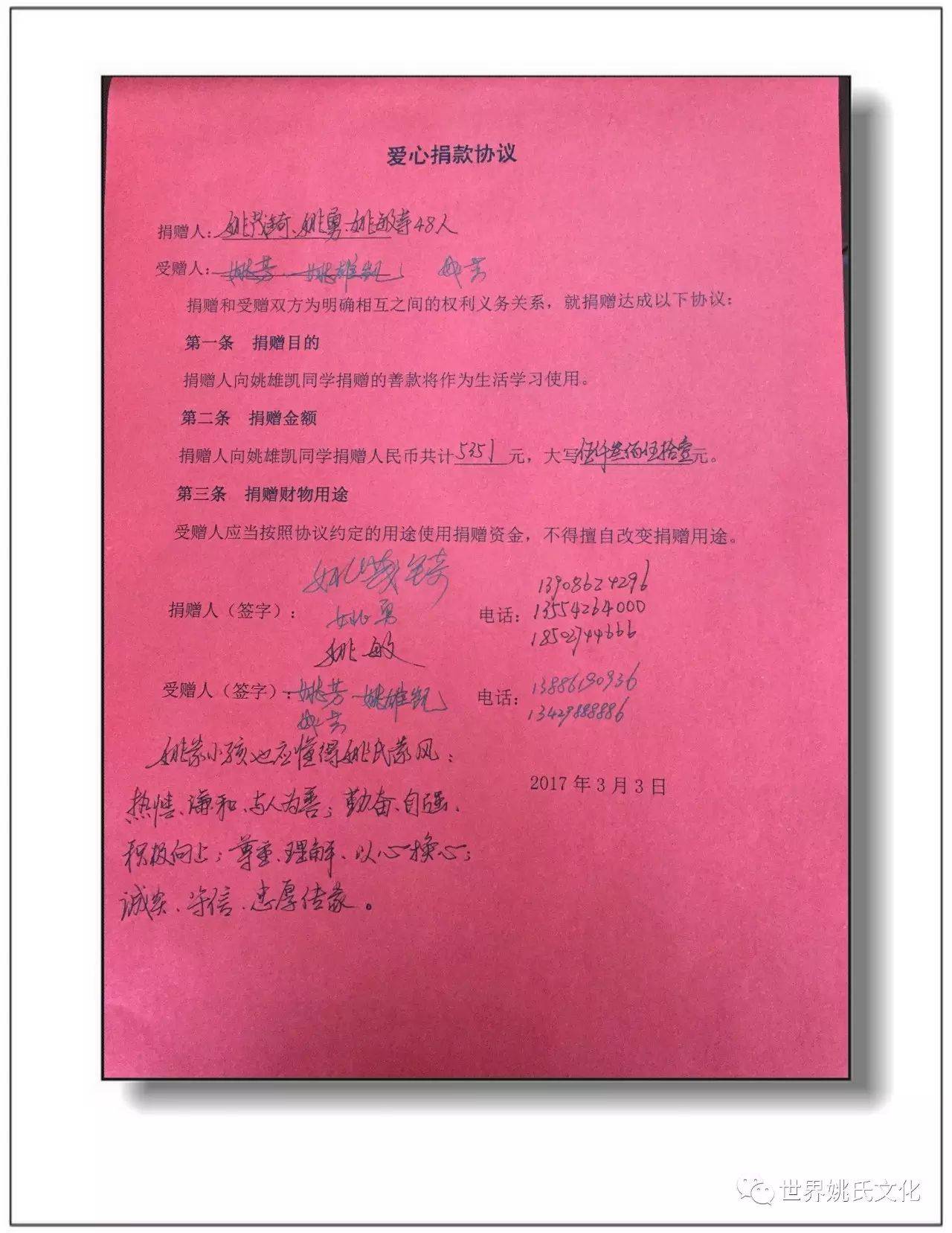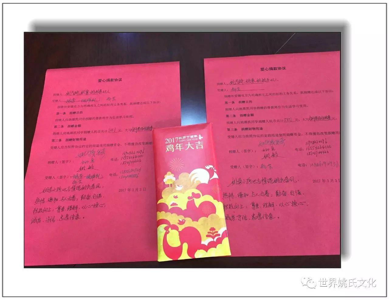 由姚茂锜先生牵头发起了网上捐助献爱心活动,姚敏,姚小琴两位宗亲负责网上收款,姚勇宗亲负责联系学校方面了解事件真实情况,在短短两周时间共募集爱心善款5351元。