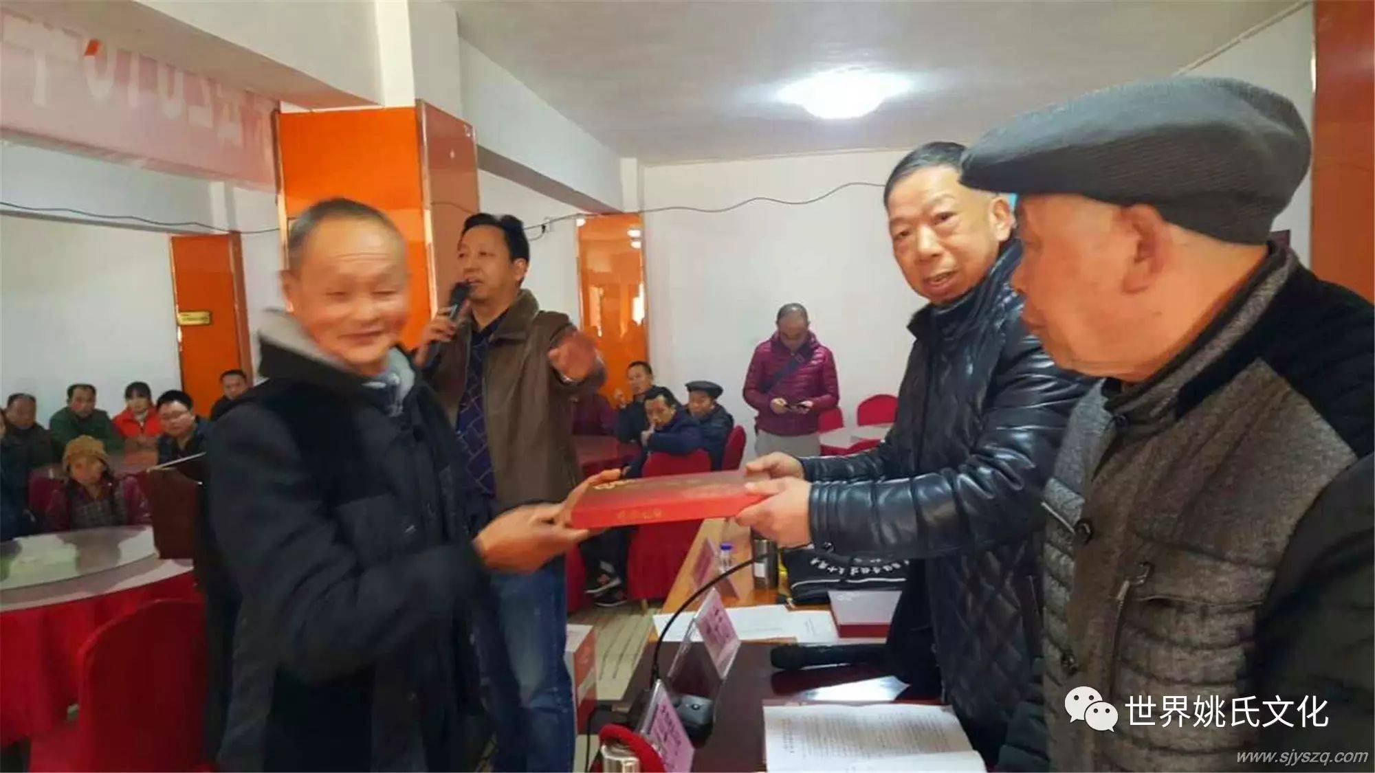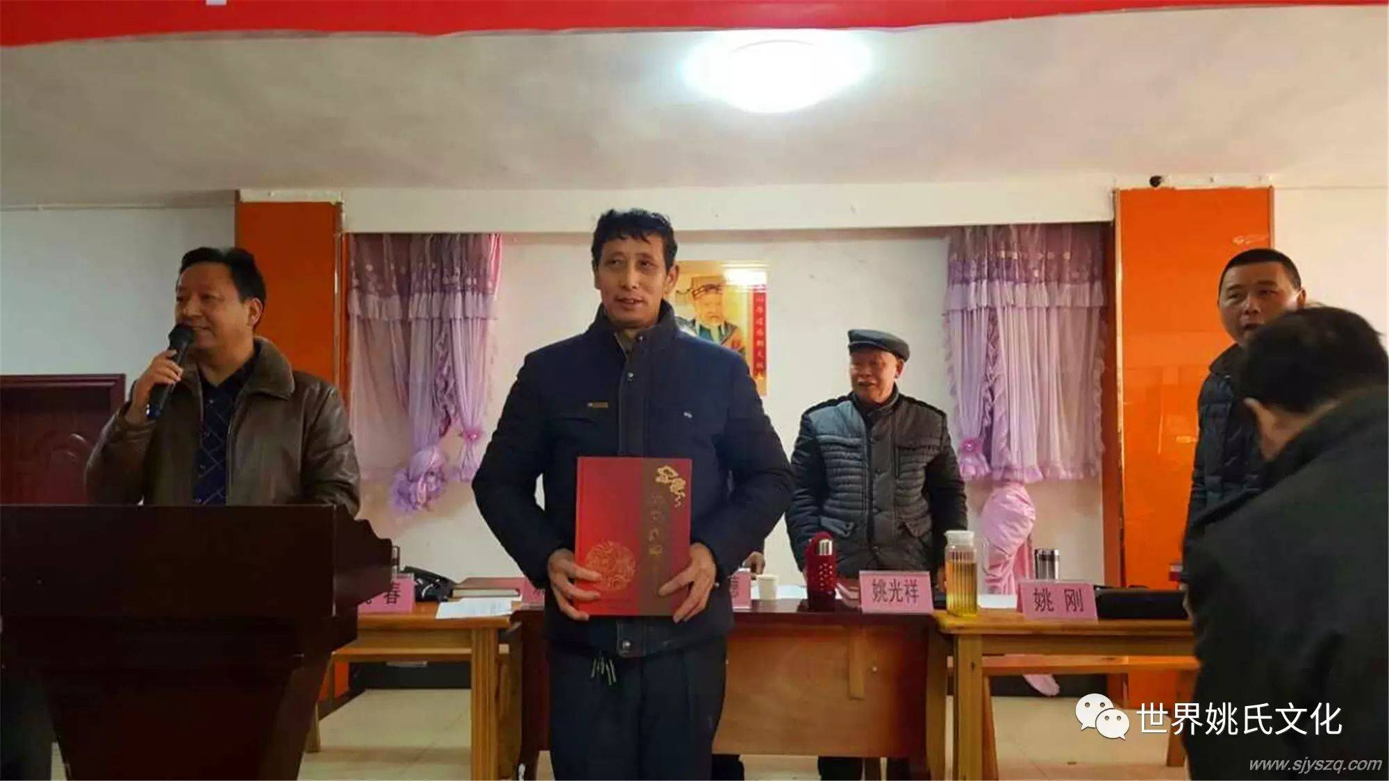 今天我们欢聚一堂,在这里隆重举行2016年总结暨《姚氏家谱》颁发仪式,为此,我代表宗亲会对一直辛勤战斗在《姚氏家谱》编辑第一线的各位宗亲以及为《姚氏家谱》修编提供各种资料、信息的宗亲和友人致以衷心地感谢!感谢大家两年多来的密切配合和辛勤劳动,感谢大家为我们姚氏家族所做的这一件大好事,这次修谱也为我们子孙万代的传承提供了坚实的文字记载和历史资料。