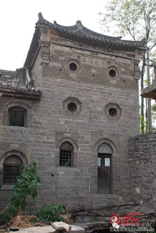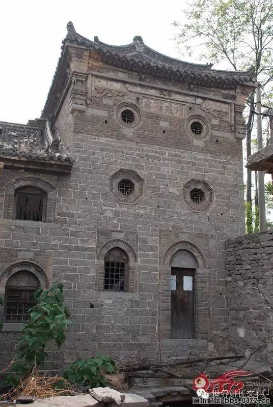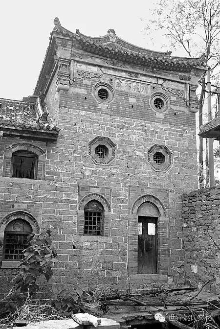 姚氏民居位于河南省安阳县都里镇上寺平村,为清朝末年当地望族姚金德所建,该建筑较好的融合了清至民国时期的建筑风格,有望评为市级重点文物保护单位。据其后代姚文生所讲,姚氏家族在当时属名门望族,姚氏民居原有建筑200多间,后期破坏严重,建筑原貌保存完好的仅剩姚氏塔楼一处。姚氏民居座西朝东,青石垒砌,7开间,面阔18.7米,进深4.5米。南部6间为三层单檐硬山顶,一层二层居住,三层阁楼储藏,门窗皆为拱券形,一层窗户木刻“刘海戏金蝉”左右对称,前墙中部雕刻有精美的天地庙,二层窗户砖刻“三颂、多庆、九如”字样。北部一间为正方形四层仿木结构形式的四何顶式,一层二层门窗呈拱券形,三层两窗户呈八卦形,四层两窗户呈圆形,檐下施雕花斗拱,建筑四角墀头雕刻精美,两侧施精美龙饰纹雀替,两雀替中部墙面镶嵌长方形石刻,上刻“用戒不虞”四个大字。姚氏民居整体建筑考究,雕饰美观,是当地保存较好且历史、艺术研究价值颇高的民间建筑。