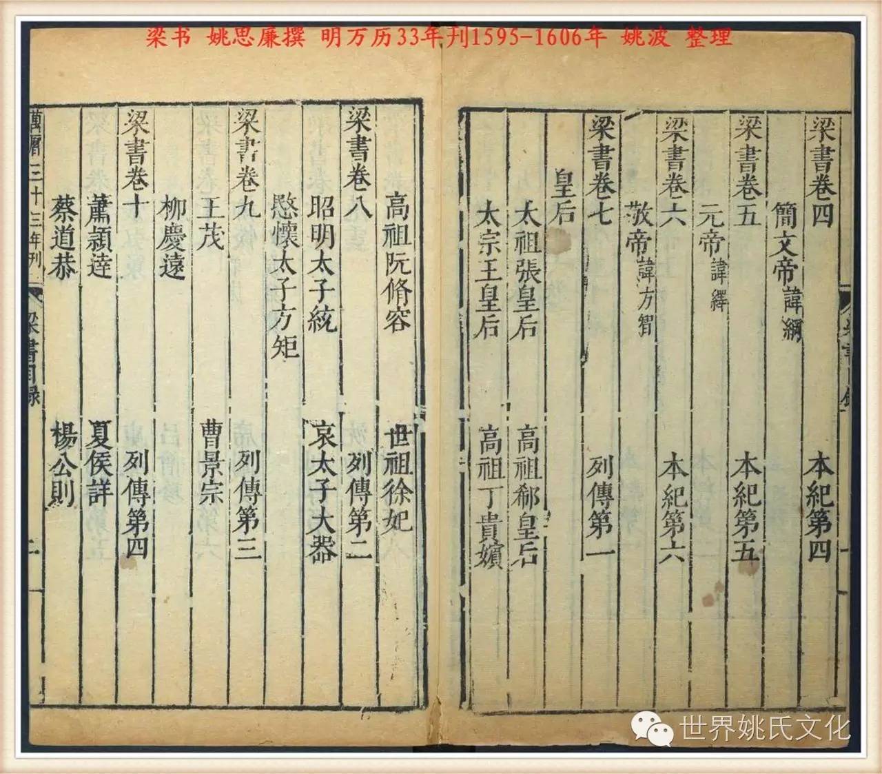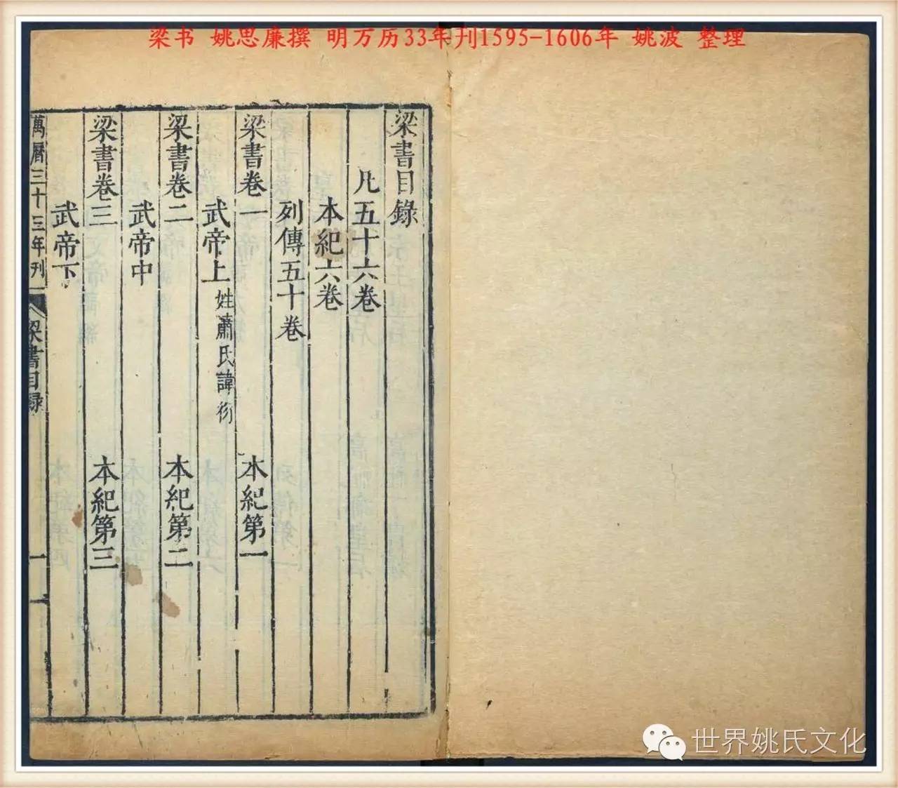 《梁书》有本纪6卷,列传50卷,合56卷。记事起于公元502年梁武帝萧衍称帝,止于557年陈霸先灭梁。