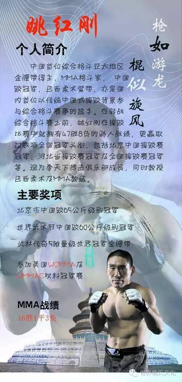 2014年8月31日,金色八月,奏响凯歌。中国原创顶级搏击赛事昆仑决走进河南商丘。神秘的商丘一直被笼罩着浓厚的远古气息和历史厚重感,作为巾帼女英雄花木兰的故里,更是平添了几分英武之气和武侠色彩。届时来自中国,土耳其,白俄罗斯,秘鲁,波兰,捷克,加拿大,伊朗,泰国等世界各地的搏击明星将依次登场。拳脚比拼,智慧相博。其中中国MMA格斗家,有着鬼跤姚美誉的河南选手姚红刚将出战65公斤级的MMA明星超级赛。
