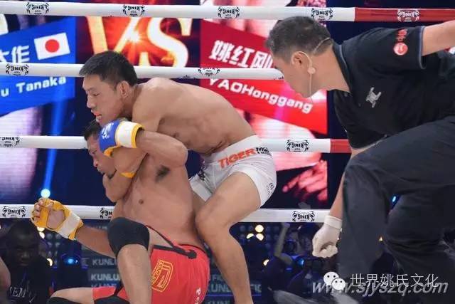 本次比赛,姚红刚将对阵日本选手 (铁马)田中大作,面对台风夸张,喜欢表演的日本综合格斗选手,姚红刚丝毫不被对手所影响。毫无花巧地向对手发起攻势,快速的前冲配合着凶猛的拳法,瞬间打乱了对手的节奏和重心。第一回合开始不足半分钟,慌不择路的田中大作便被姚红刚出神入化,充满传统武术味道的鬼跤绝技轻松摔倒在地,并在地面战中,毫无还手之力地瞬间绞杀,此时比赛刚刚五十秒,现场观众还没反映过了,比赛结束了。