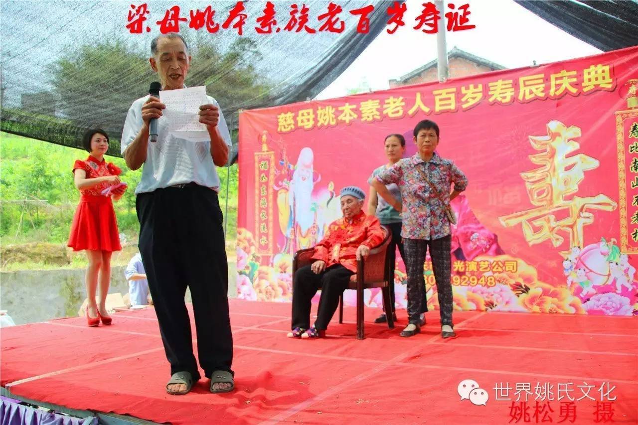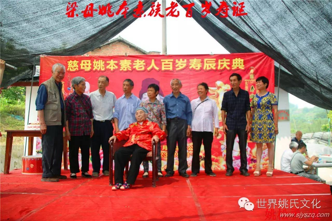 欣逢今日是你百岁寿诞,老四川姚氏宗亲联谊会谨向你致以热烈的庆祝!“山中难寻千年树,世上难得百岁人”在姚本素族老百岁寿诞的大喜日子里,我们欢聚一堂,共同庆祝族老的百岁寿辰。