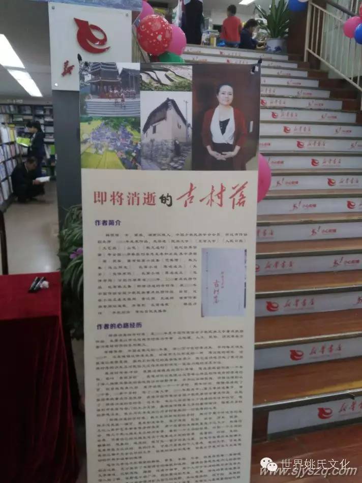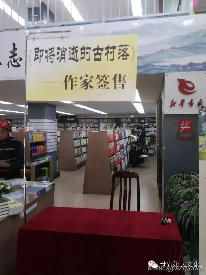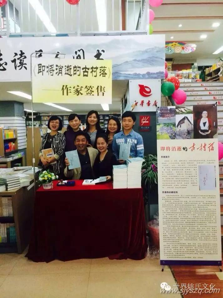 2016年书香怀化,全民阅读启动仪式暨“你读书 我买单 ——4.23世界读书日”公益活动于4月23日上午9点半在怀化市新华书店中心门市部举办,拟出席领导:市委常委、市委宣传部部长钱德喜,副市长张霞,市文体广新局党组书记、局长姚团,市文体广新局分管领导,市新华书店领导、市图书馆领导、鹤城区文体广新局领导其他人员:本土作家代表、人民路小学师生代表、图书馆读者代表、图书馆文化志愿者。其中一项活动:怀化本土作家姚筱琼《即将消逝的古村落》新书签售仪式。时间: 4月23日 9:45 ,地点:市新华书店中心门市部。参加人员:中国少数民族学会会员、湖南省作家协会会员、怀化市作协副主席姚筱琼女士、市作家协会代表、读者欢迎作协会员和文学爱好者积极报名参加支持此项活动。