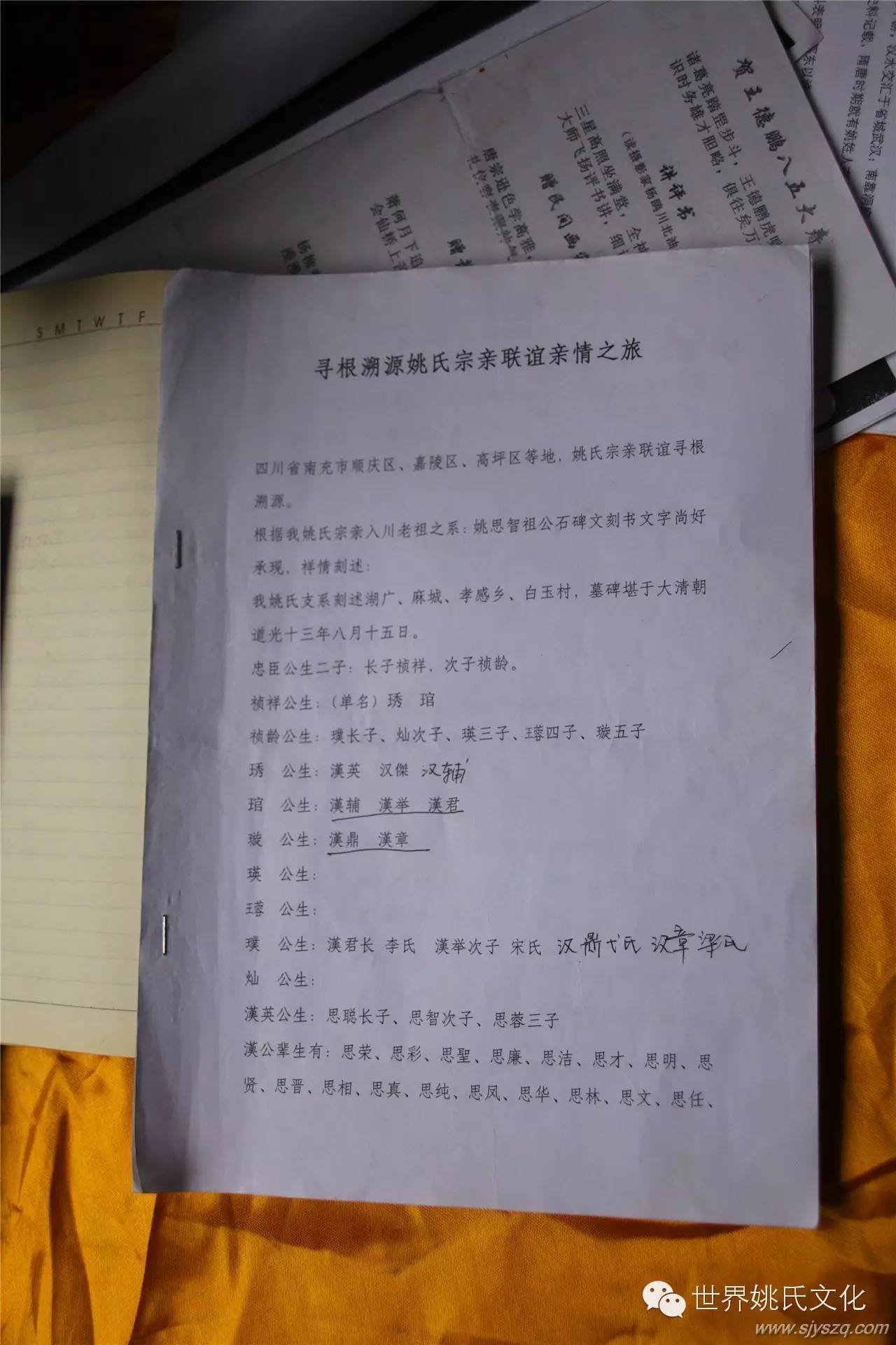 和顺沟这支姚氏目前关心、参与寻根溯源的人很少,始迁祖前五代还有墓碑可考,始迁祖以下的资料姚盛其宗亲已收备齐全。目前又要寻找舜裔世系,这也是来都江堰的主要目的,我鉴于这种情况下,不建议他一定非要舜裔世系,因为从目前看那本谱上的舜裔世系都不能经得起验证,不具有说服力,也只是一个参考世系。不能为找舜裔世系而搁置入川后世系久不面世。自己重病才刚康复又投入家谱历史文化收集中,除了自己又没有其它人再愿意加入这样烦琐的家族历史文化的整理,自己也非常担心。毕竟七十岁人,又是癌症初逾,已搁置两年之久的家族历史文化还得要理出来,争取年底拿出样稿并送印刷厂印刷。