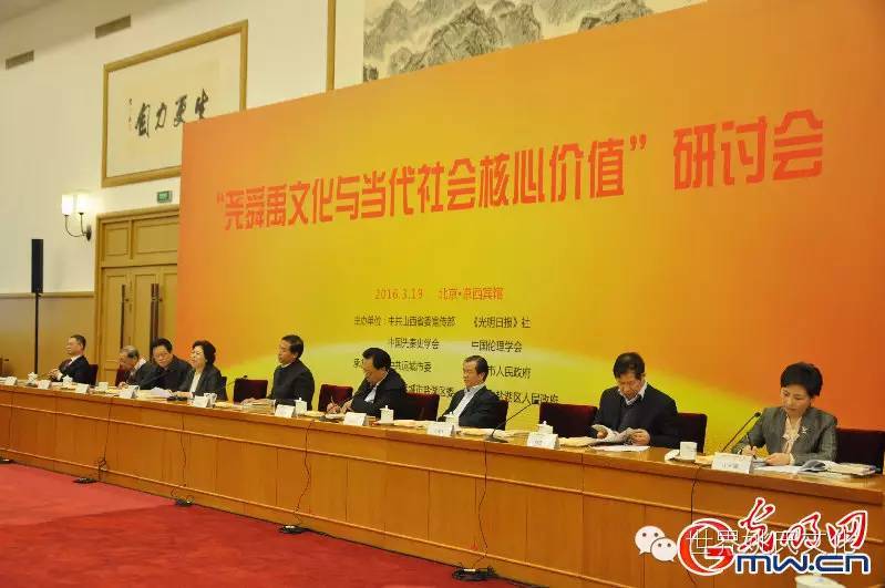 人民网北京3月19日电 (记者赵晶)“尧舜禹文化与当代社会核心价值”研讨会今日在北京举行。中央宣传部副部长王世明,河南省原省委书记、中央马克思主义建设工程咨询委员会主任徐光春,《光明日报》总编辑何东平,全国人大教科文卫委员会副主任、民盟中央副主席张平等领导出席研讨会。山西省委常委、宣传部长胡苏平致辞,运城市委书记王宇燕主持研讨会,运城市委副书记、市长王清宪作主旨发言。
