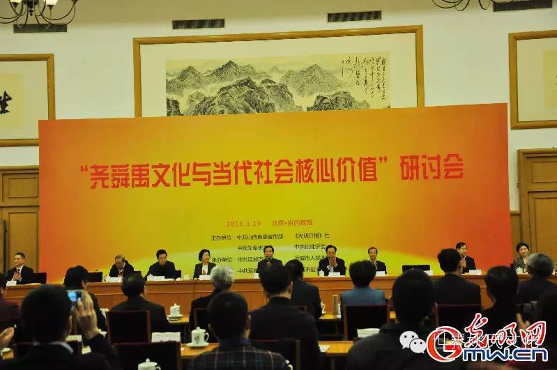 王世明在讲话中指出,党中央审时度势,立足中华优秀传统文化,提出了社会主义核心价值观建设这一重大的战略决策。承续尧舜禹优秀传统文化,我们必须把握好以下四个关键词,即中庸高位,在哲学层面上高位思考中庸传统思想,结合实际、去粗存精,增强对中国特色社会主义的理论自信、道路自信、制度自信;敬天智慧,即在思想上敬天、在行为上法天,友善万物、尊重自然规律,建设资源节约型、环境友好型社会;大公理念,即坚持爱国主义这一时代主旋律,正确处理集体和个人的关系,在利他和利公中实现个人价值;以德为先,就是以德支撑助推民族复兴。 徐光春在讲话中指出,尧舜禹文化是炎黄文化的重要组成部分,也是炎黄文化的后起文化,是炎黄文化的创新和发展,以创造合和为主要内容的价值追求,这是那个时期的核心价值追求。尧舜禹文化与当代社会核心价值是一脉相承、渗透融化、继承发展的关系。尧舜禹文化是当代社会核心价值的根脉和基因,已经渗透到、融化到我们社会主义核心价值观里面,当代社会的核心价值理念、价值体系是在尧舜禹文化的基础上不断的发展、不断的丰富、不断的创新、不断的拓展形成的。要继承和发展尧舜禹文化,学习和践行社会主义先进文化,坚持中国特色社会主义方向,高举中国特色社会主义的伟大旗帜,更好地培育和践行社会主义核心价值观。 胡苏平在致辞中指出,尧舜禹是华夏文明的源头和根脉所在,博大精深、内涵丰富、影响深远。尧帝的仁爱、民本、勤俭、选贤任能、采言纳谏等思想和精神,舜帝的宽厚律已、修德治孝的思想和精神,大禹的天下为公、公而忘私、以身作则等思想精神都对华夏文明的价值观的形成产生了重要的甚至是决定性的影响。挖掘梳理这些宝贵资源,提炼出有代表性有影响力的文化符号,并逐渐形成有影响力的文化品牌,推动区域文化经济的繁荣发展,树立山西的良好形象,是我们在推动文化建设中,迫切需要解决的重大课题。要深度研究开掘尧舜禹文化资源,汲取思想道德营养,遵循文明根源,加强社会主义核心价值观建设,打造尧舜禹文化品牌,为山西发展提供更加有利的学理支持、智力支持和舆论支持,牵引、带动区域经济发展。 研讨会上,来自中央政策研究室、清华大学等机构和高校的40余名知名专家学者,围绕尧舜禹与“古中国”、尧舜禹与核心价值观、尧舜禹与德孝文化等三个方面研讨课题,进行了学术交流和研讨商榷,深入研究了晋南“古中国”文化的丰富内涵,从尧舜禹文化中深挖“德、孝、公、廉、敬、忠”等社会主义核心价值观的文化基因。 研讨会由山西省委宣传部、《光明日报》社、中国先秦史学会、中国伦理学会主办,运城市委、市政府,运城市盐湖区委、区政府承办,是山西省“古中国之旅”系列活动的开篇之举,也是运城市2016年加强文化旅游宣传推介的“重头戏”,必将为“古中国·新山西”文化品牌的打造增添新的动力。 长按三秒识别关注 编辑 姚 波 世界姚氏宗亲联谊会 展示家族的辉煌历史 助于激励子孙继往开来