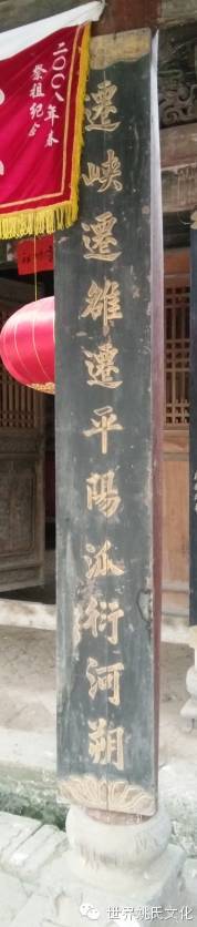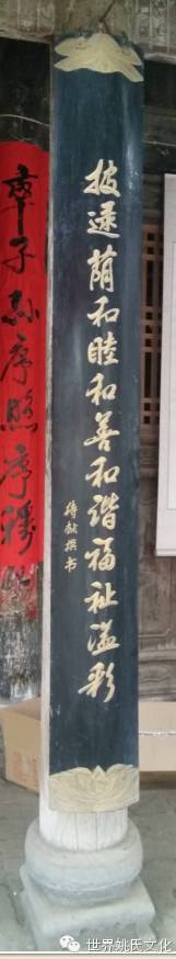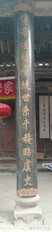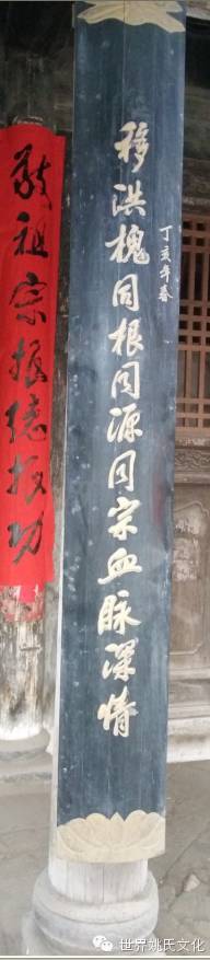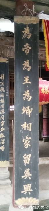 家庙现存的两付木制对联是族人定根老人保存下来的。1955年黄河发大水,孟县农场场部搬到姚氏家庙内办公,祠堂内的东西损失殆尽。两付木制对联散落在街 上,并流落到了西虢村。定根公费尽周折找了回来,并搬到自己家里妥善保管,才使得祠堂的宝贝得以幸免。这两副对联中:一副对联上书“传帝法绍帝统世系千秋昭虞史,谥文贞旌文献家声万古著唐朝”。另一副对联上书“为帝为王为卿相家留吴兴,迁峡迁洛(雒)迁平阳派衍河 朔”,横批是“吴兴世家”,文革前还有一块木制匾额上书“沿河居访”,在文 革时失落了。这些文字描绘了家族繁衍及迁徙的脉络,给后人寻根问祖提 供了有力的帮助。