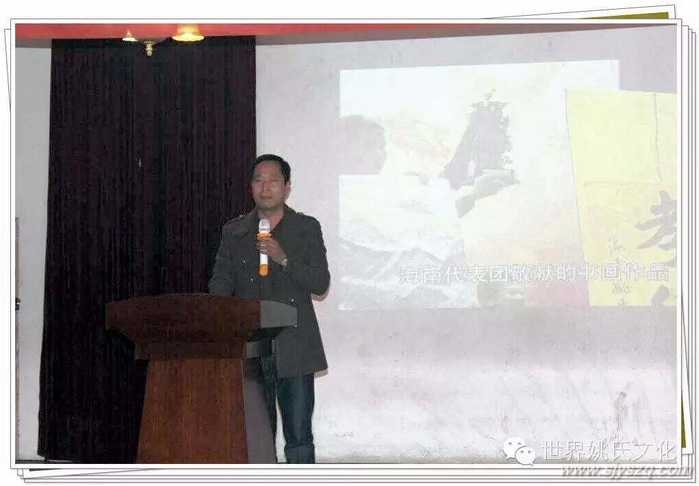 大会第一项由临泉姚氏宗亲联谊会秘书长姚坤总结2015年宗亲会的工作报告和2016年的发展计划。