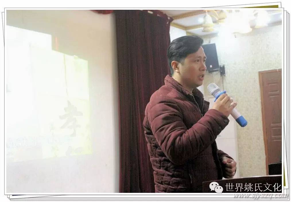 大会第二项由阜阳姚老家发起人姚启成讲解修坟祭祖,兴修祠堂,修编家谱的重要性。为大家分享姚老家近十年来修坟祭祖,兴修祠堂,修编家谱的艰辛历程,也为临泉姚氏讲解了他们的成功经验。