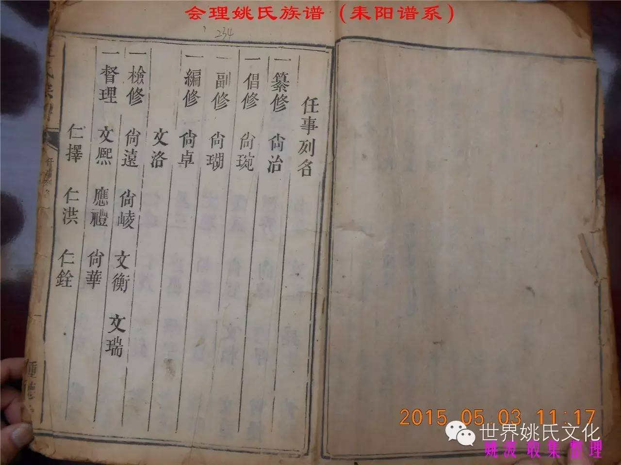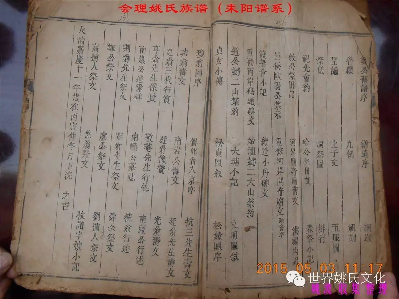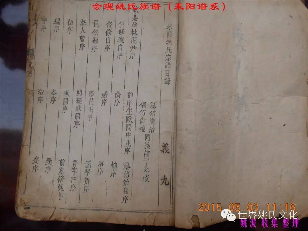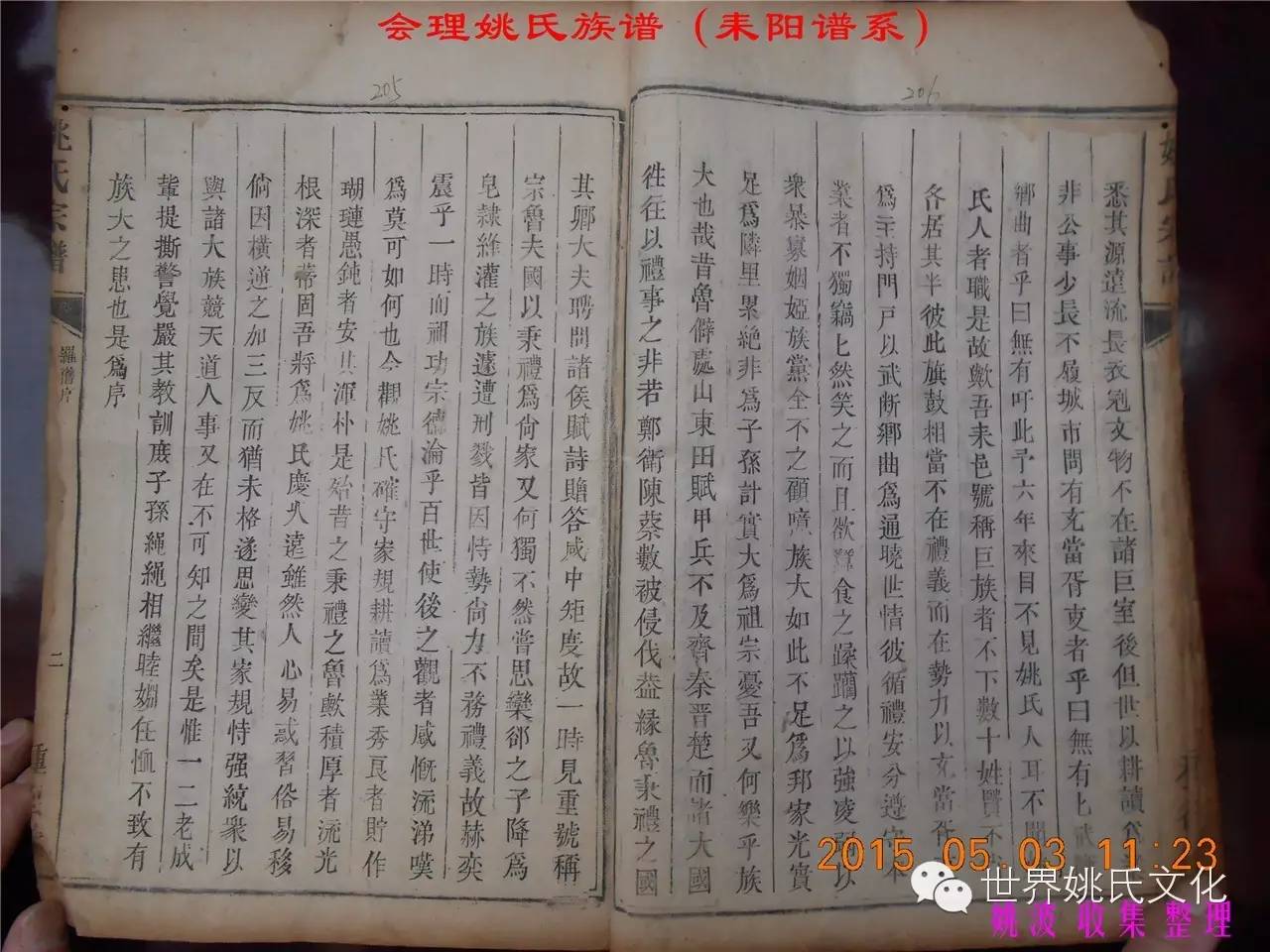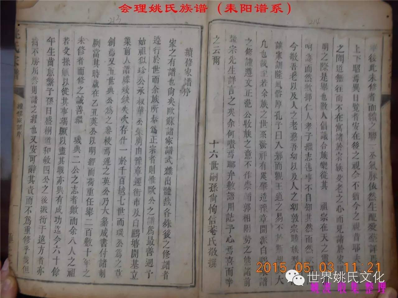 适逢老四川姚会走访攀西姚氏之际,远在湖南衡阳的姚爱平宗亲,不知道是不是凑巧还是知道我们将去会东走访。特别委托我们帮助寻找定居会理州北门的耒阳姚氏族亲。并提供了入川世系和资料。说明了在同治年间有信回籍合谱,但因路途遥远,阻隔回故居合谱。受此之托,所以特别关注来自衡阳的姚氏,在查看到接近中午时候,来自会理的姚孔建宗亲带了两本家谱赶到现场,我也迫不及待打开,刚翻到第一页,就发现耒阳谱序,心中也暗自吃惊,不可能这么有缘千里来相识吧!再看几页,几乎肯定是湖南耒阳姚爱平宗亲要找失散多年的族人。马上急不可耐的和姚爱平宗亲询问和求证,前后也不过两分多钟而已,就这么有缘。在得到肯定答复后,让他们互相发送电话,并通话各自互相问候。久违的乡音,亲切的话语。以至于两地通话结束之后,孔建宗亲又急忙往家中报喜,只听到说...“找到了” “找到了”,“还和他们通话了”。不知是激动,还是感动,其它话语就没法说出来。有感于此;我不得不留下几句,以对分别多年又重逢的感伤。