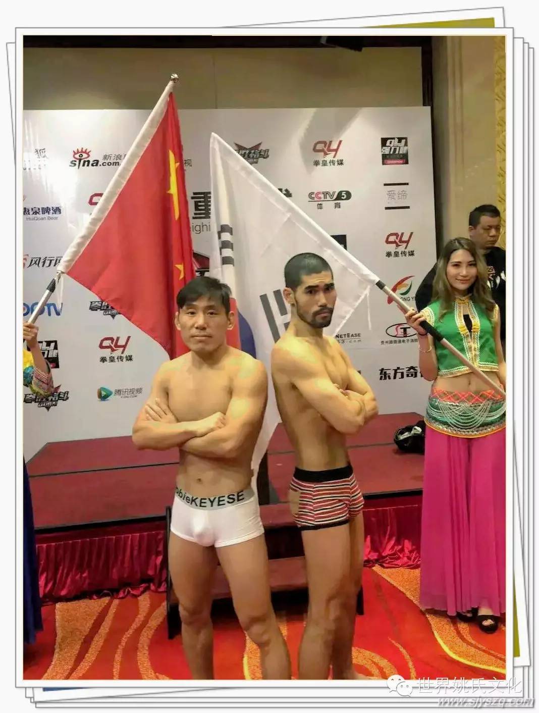 姚红刚顺利通过称重 姚红刚称重后和对手现场对阵照片 比赛现场宣传画