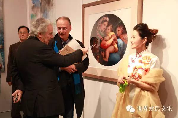 法国卢旺省议员皮埃尔先生、著名收藏家克里斯汀先生、油画家朱力安先生和姚建萍亲切交谈。