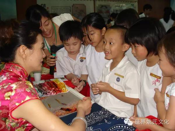 | 2007年10月,姚建萍应邀赴新加坡南洋小学表演苏绣艺术