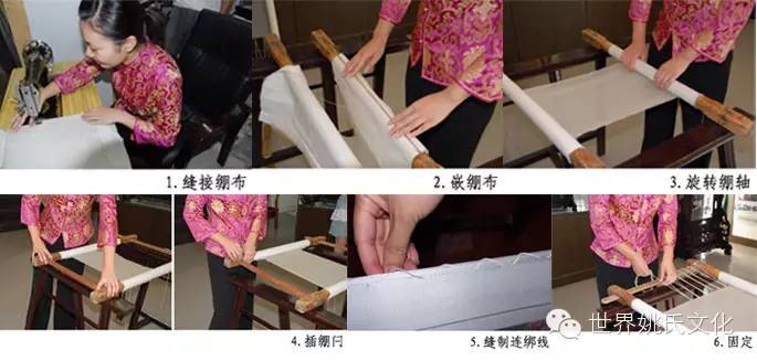 装裱完成:根据需要将刺绣完成的绣片软裱或硬裱成刺绣成品,除传统软裱和硬裱外,还有镂空裱、立体裱、透光裱等方式。
