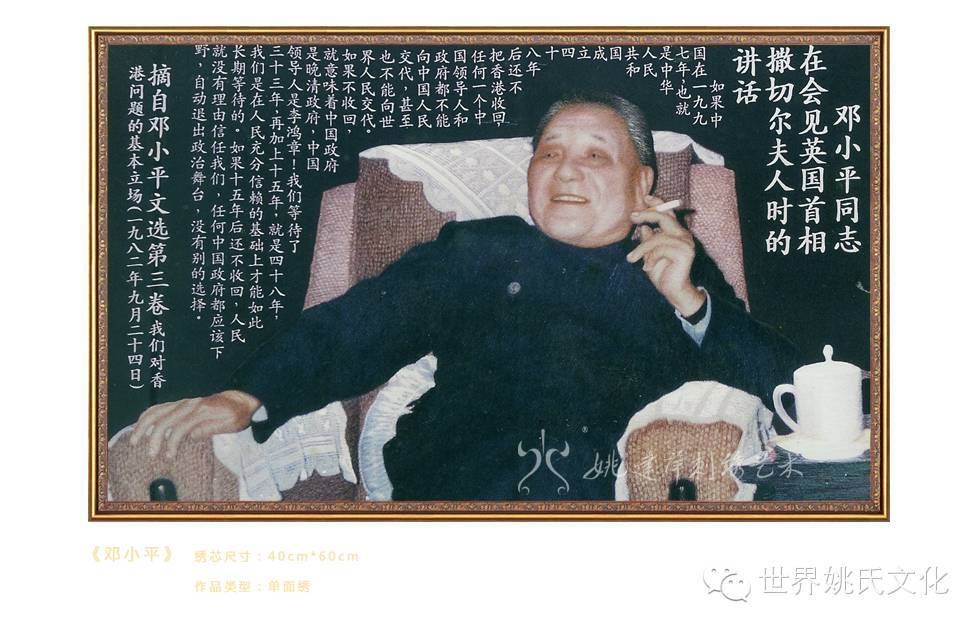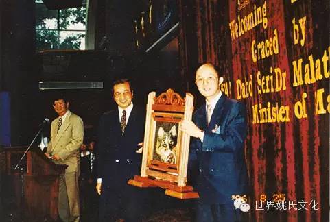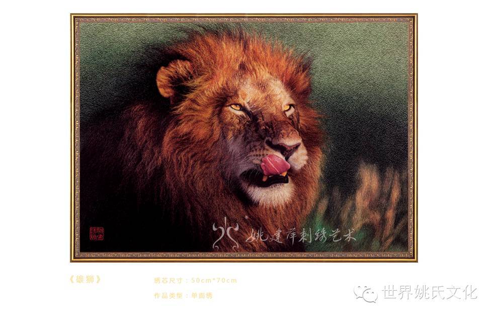 1996年8月,在北京外交部,姚建萍刺绣作品三异绣《猫与狮》作为国礼赠予马来西亚总理马哈蒂尔。