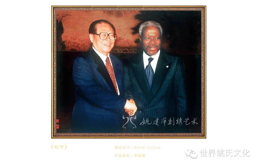 2002年8月,姚建萍在中国驻荷兰大使馆举办个人刺绣艺术展,并为各国大使和大使夫人做现场刺绣表演。