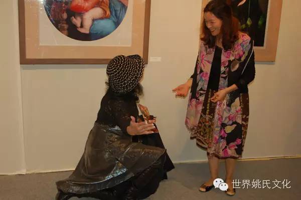西班牙艺术家桑德丽娜激动得向姚建萍下拜。