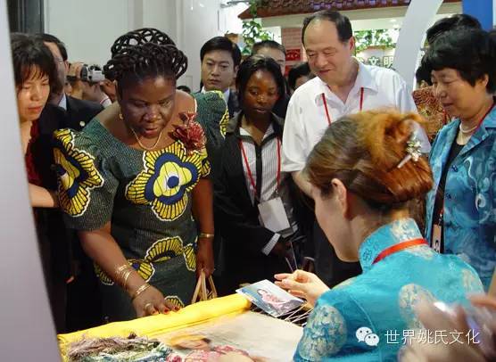 | 2005年8月,莫桑比克总理路易莎·迪奥戈在国家及江苏省领导的陪同下,观看姚建萍苏绣技艺表演