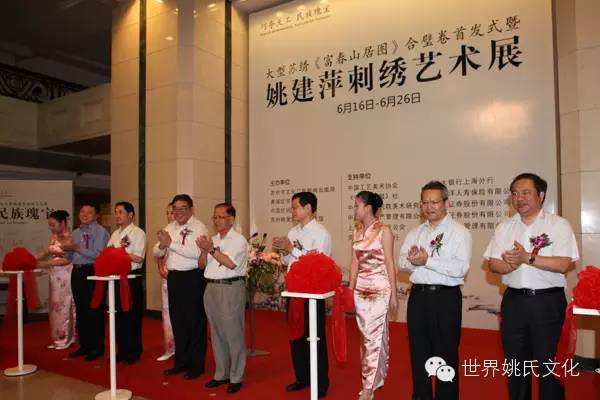 2011年6月16日,由姚建萍领衔创作的大型苏绣作品《富春山居图》合璧卷首发式暨姚建萍刺绣艺术展在上海美术馆隆重举行。出席开幕式的领导有全国人大常委、原上海市委副书记、市人大常委会主任龚学平;全国人大常委、原光大集团董事长王明权;全国人大常委、民进中央副主席朱永新;上海黄浦区区长周伟;中国民间文艺家协会副主席、分党组书记罗杨;中国人保集团副总裁周立群;全国妇联发展部副部长崔卫燕;苏州市人民政府副市长王鸿声等。