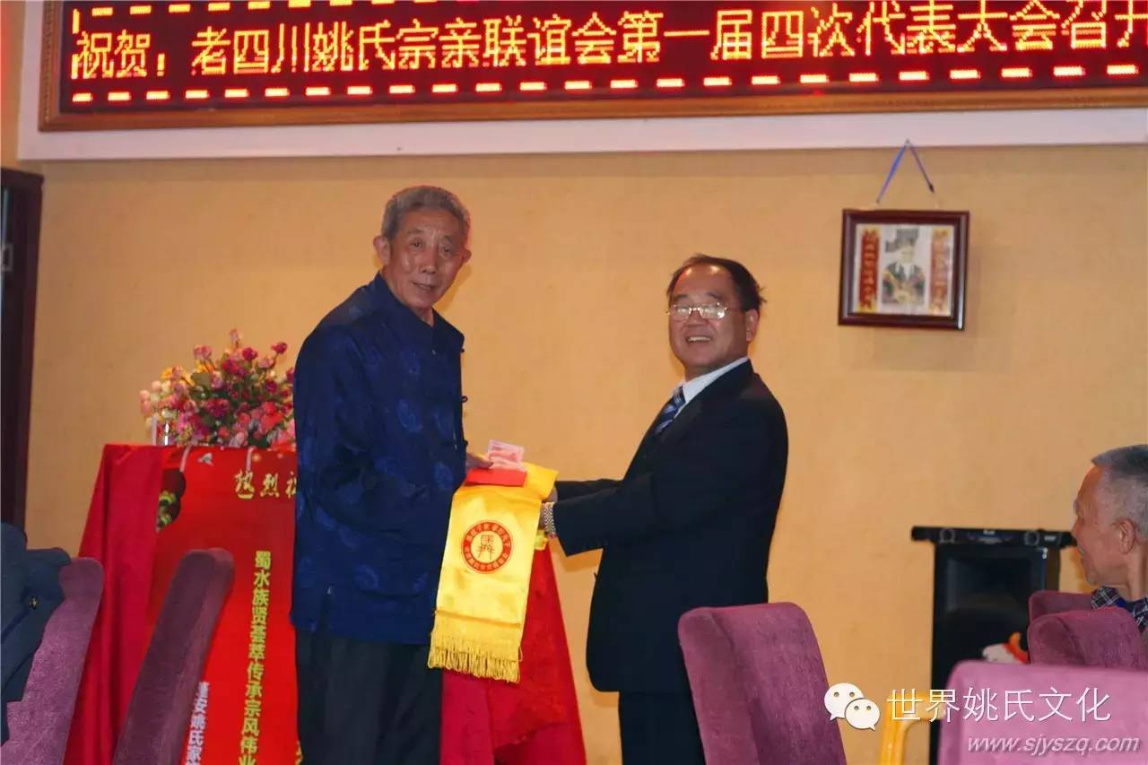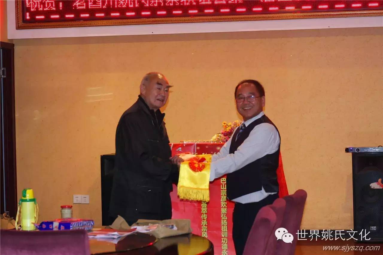 南充姚氏族老慰问金和纪念品由南充姚氏宗亲联谊会姚邦茂会长代为转交