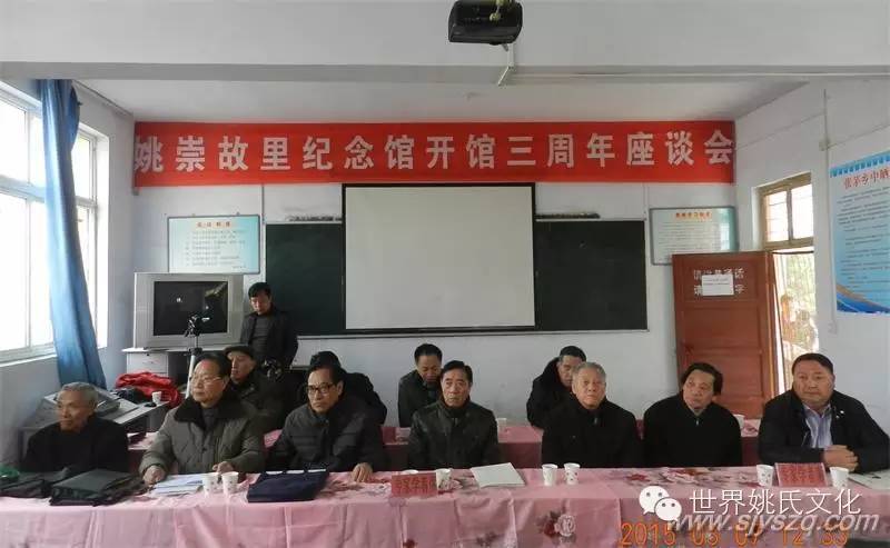 1、2015年3月7日,举办陕县姚崇故里纪念馆开馆三周年座谈会。图为座谈会会场主席台