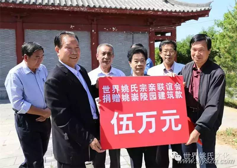 5、2015年5月12日,是姚泽嘉主席一行,瞻仰拜祭伊川万安山姚崇公墓园,并捐献建筑款5万元