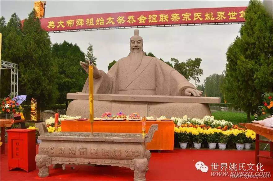 1、2015年10月25日,世界姚氏宗亲联谊会举行恭祭虞舜圣帝大典。图为大典舜帝广场祭祀