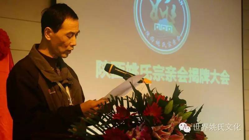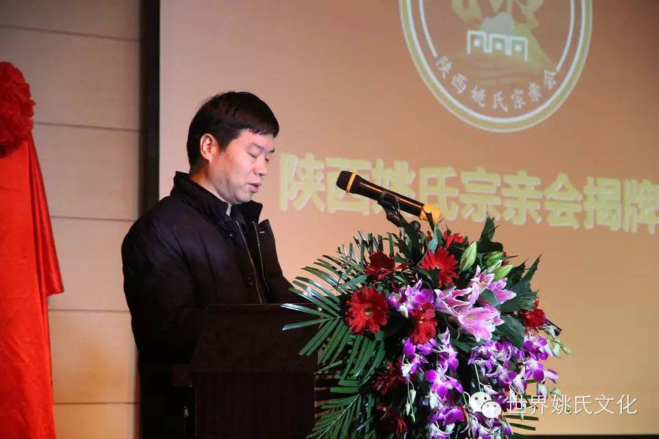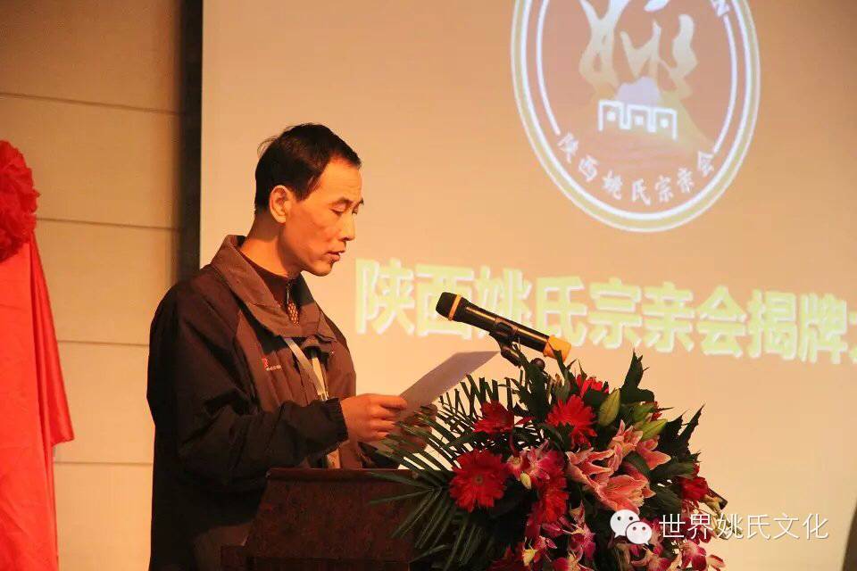 第三项:陕西姚氏宗亲会宗亲姚文静,西安培华学院副院长宣读《世姚会致陕西姚氏宗亲会揭牌大会贺信》;